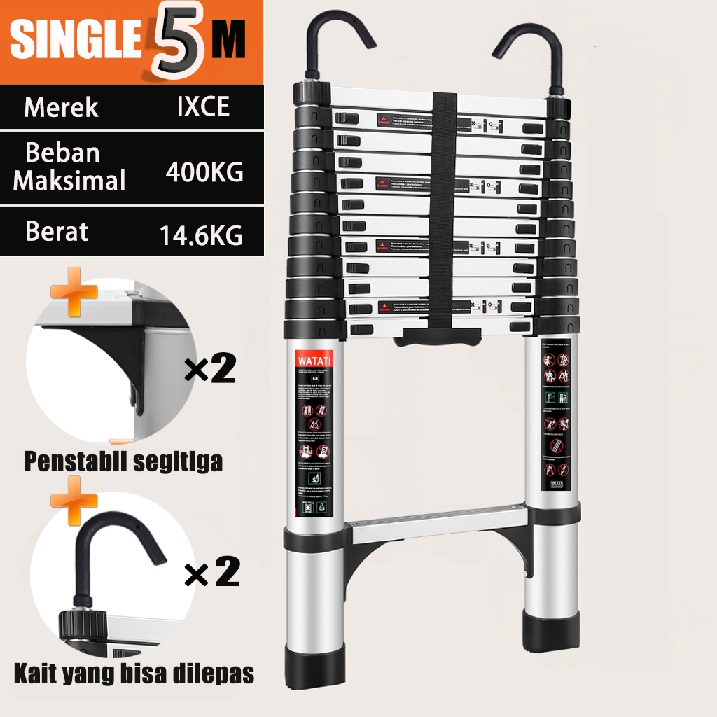 IXCE Tangga Tele Aluminium 5-7m - Tangga Lipat Serbaa, Tidak Berkarat, Aman dan Stabil