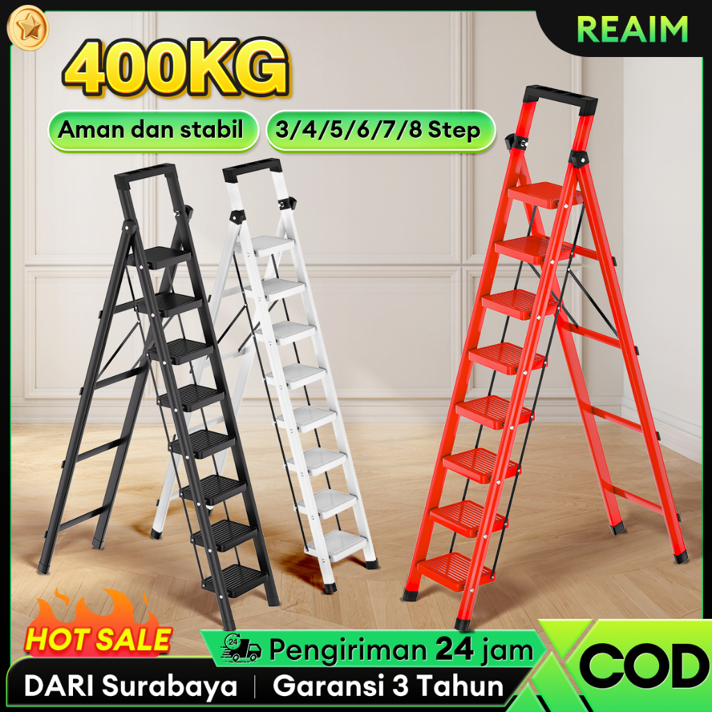 REAIM Best Seller! Tangga Lipat 500KG 7 Step Aluminium - Kaki Anti Slip & Stabil EXTRA (Merah/Hitam)