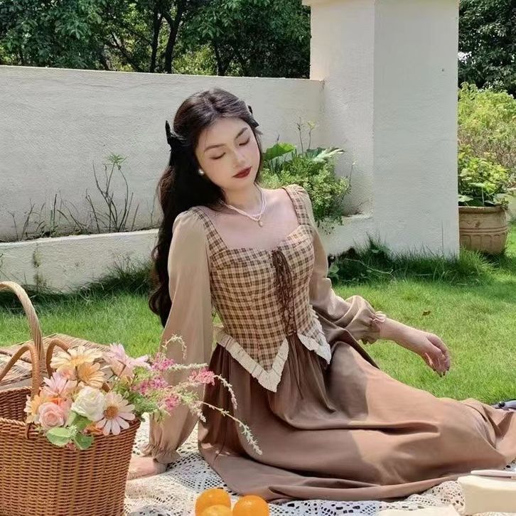 Dres Korea Dress Retro Lengan Panjang Korea Vintage