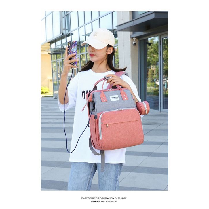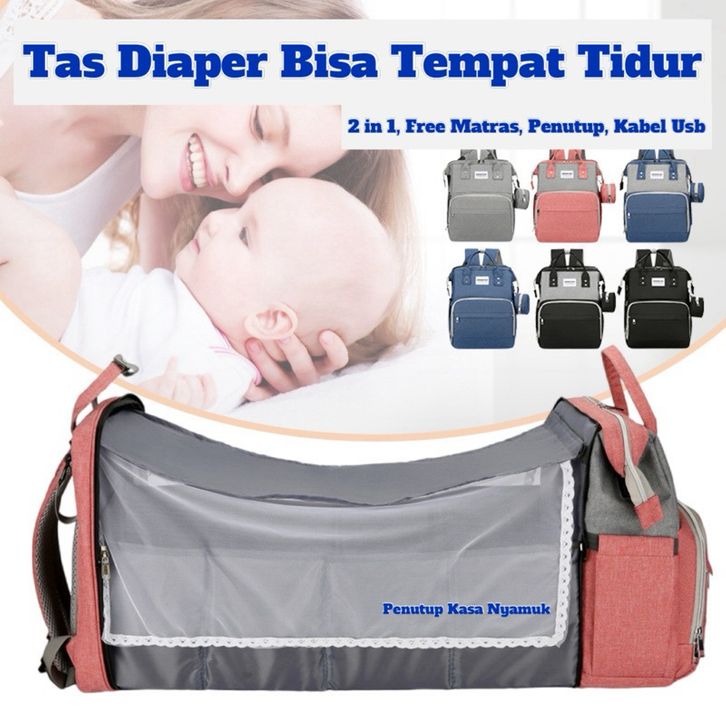 Tas Bayi 6032 - Tas Ransel Bayi 2in 1 “Sunshine Deer” Diaper Bag Tas Perlengkapan Bayi Kasur Usb Tas Travel Bayi Susu P