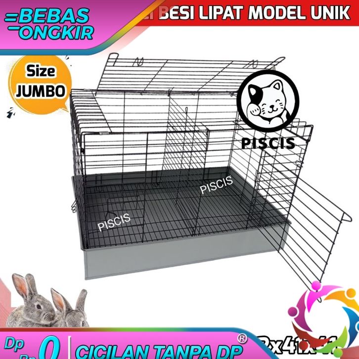 KANDANG KELINCI KUCING TUPAI BESI LIPAT MURAH SIZE JUMBO P62xL41xT41 Hitam Galvanis