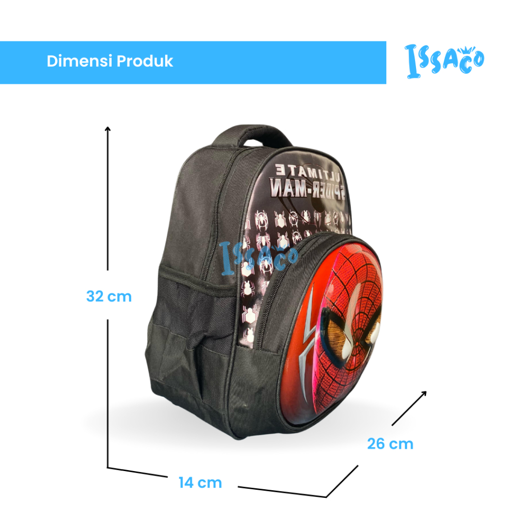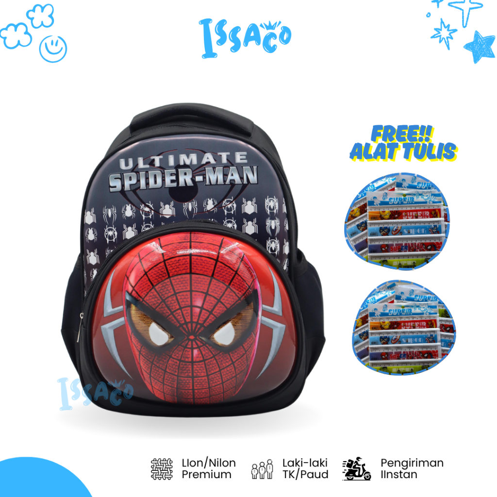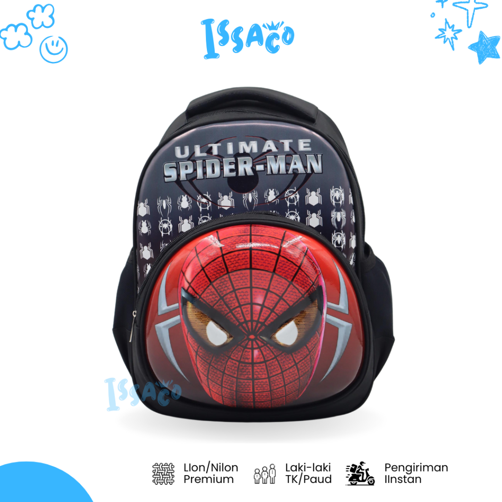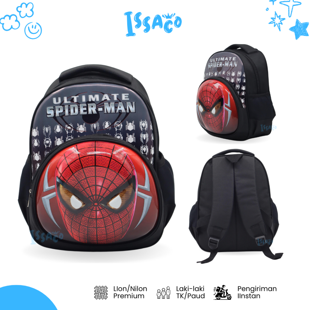 Issaco Tas Ransel Anak Sekolah Paud - Tk Laki2 3D Timbul Motif Karakter Superhero Spiderman Hitam