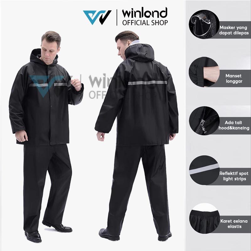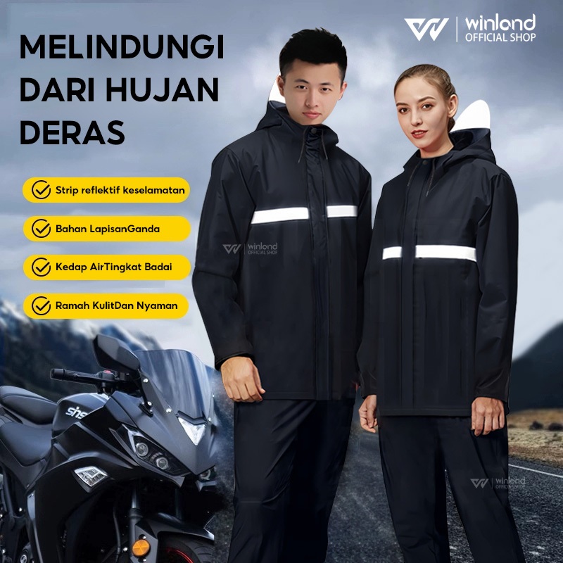 WINLAND JAS HUJAN PRIA DAN WANITA MANTEL HUJAN RAINCOAT MANTEL HUJAN MOTOR ANTI REMBES FULL PRES
