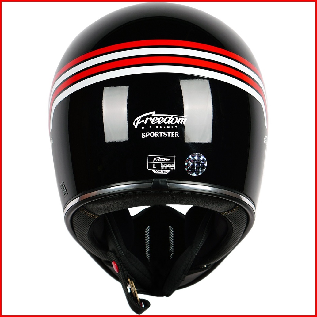 Njs Freedom Sportster Black Red - White - Helm Full Face Njs Njs Retro Freedom Helm Njs Motif Sportster Njs Ori Sni