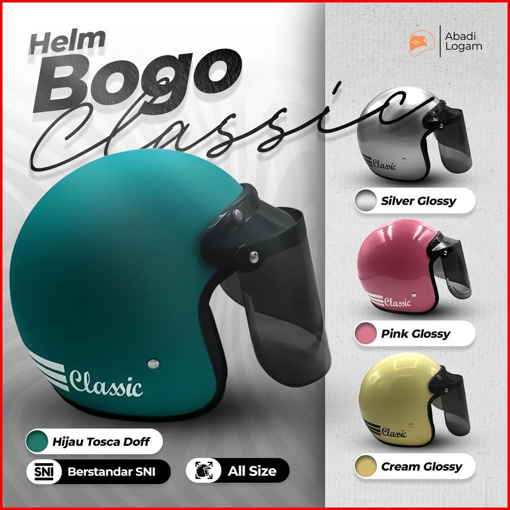 Helm Bogo Dewasa Classic Motorcycle Retro Sni Ori Cepol Wanita Pria Glossy Hijab Cepol Hds Orange Red