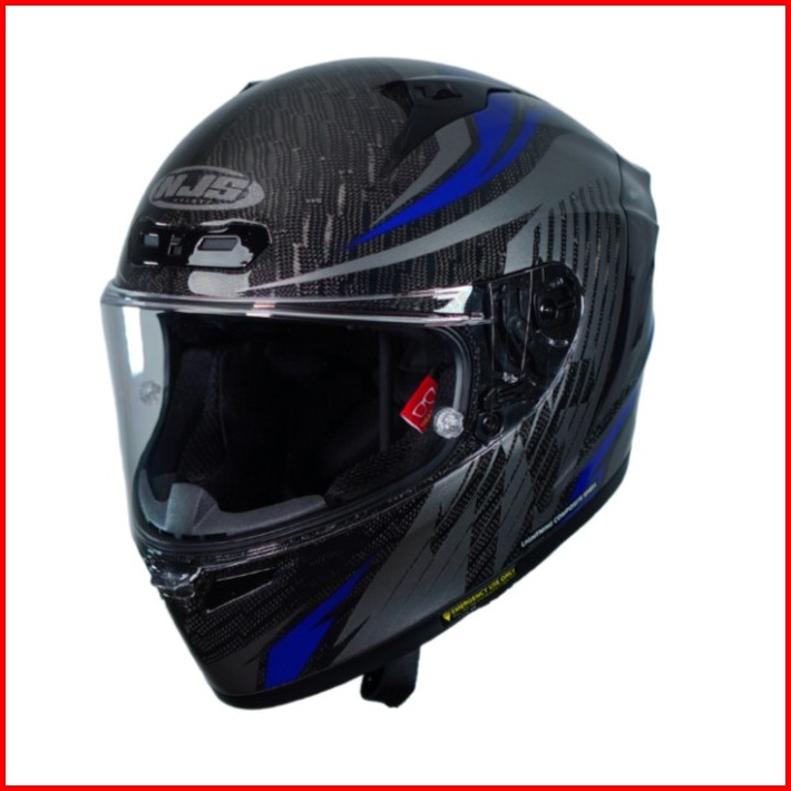 Njs Zx-1r Carbon Dextro Blue Gloss Doff Helm Full Face Free Pinlock - Helm Fullface Njs Zr Njs Fullface Zr Motif Helm Nj