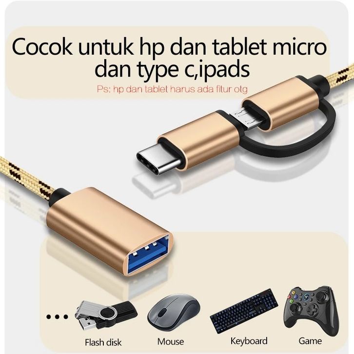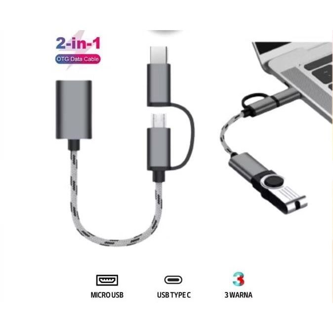 Kabel OTG 2 IN 1 Type C Micro USB to USB Female 3.0 Adapter OTG Multifungsi Flashdisk Mouse