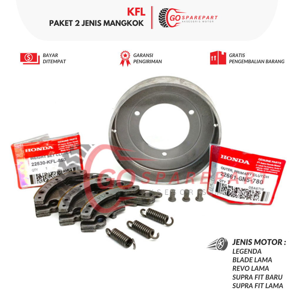 (HONDA) PAKET 5 KFL MANGKOK GANDA + GANDA ONLY + PLAT KOPLING + RANTAI KETENG + KARET GANDA / LEGENDA / BLADE LAMA / REV
