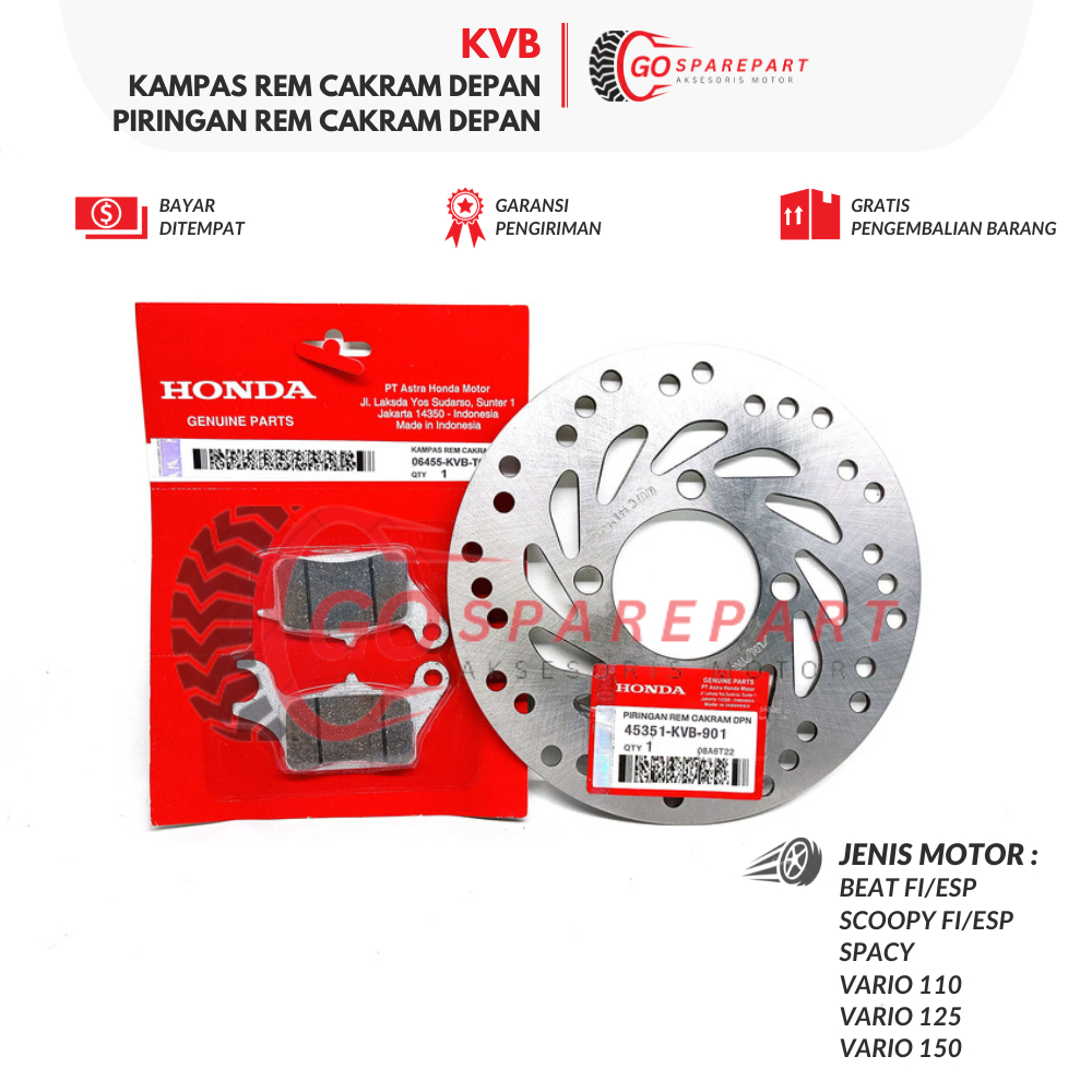 BONUS KAMPAS REM DEPAN + (HONDA) KVB PAKET KAMPAS REM BEAT FI DEPAN+PIRINGAN / SCOOPY FI/ESP / SPACY / VARIO 110 / VARIO
