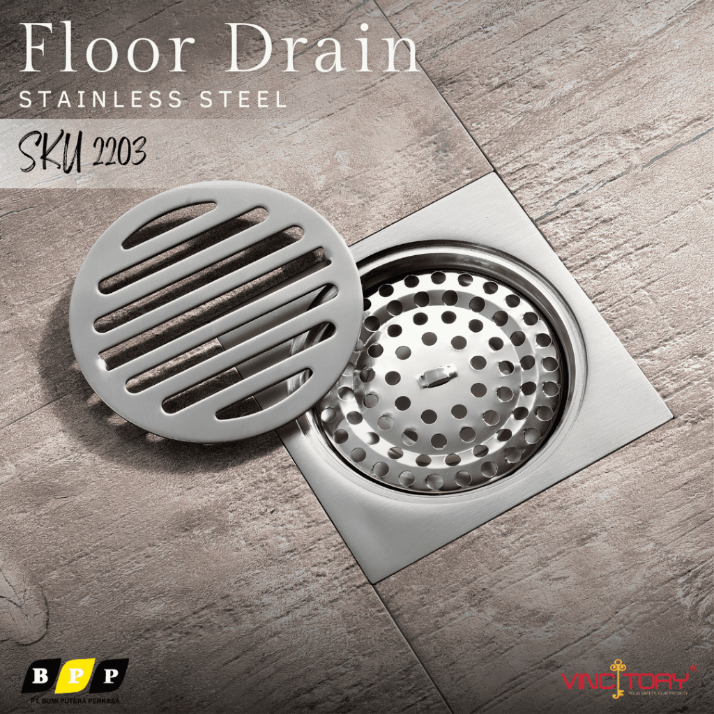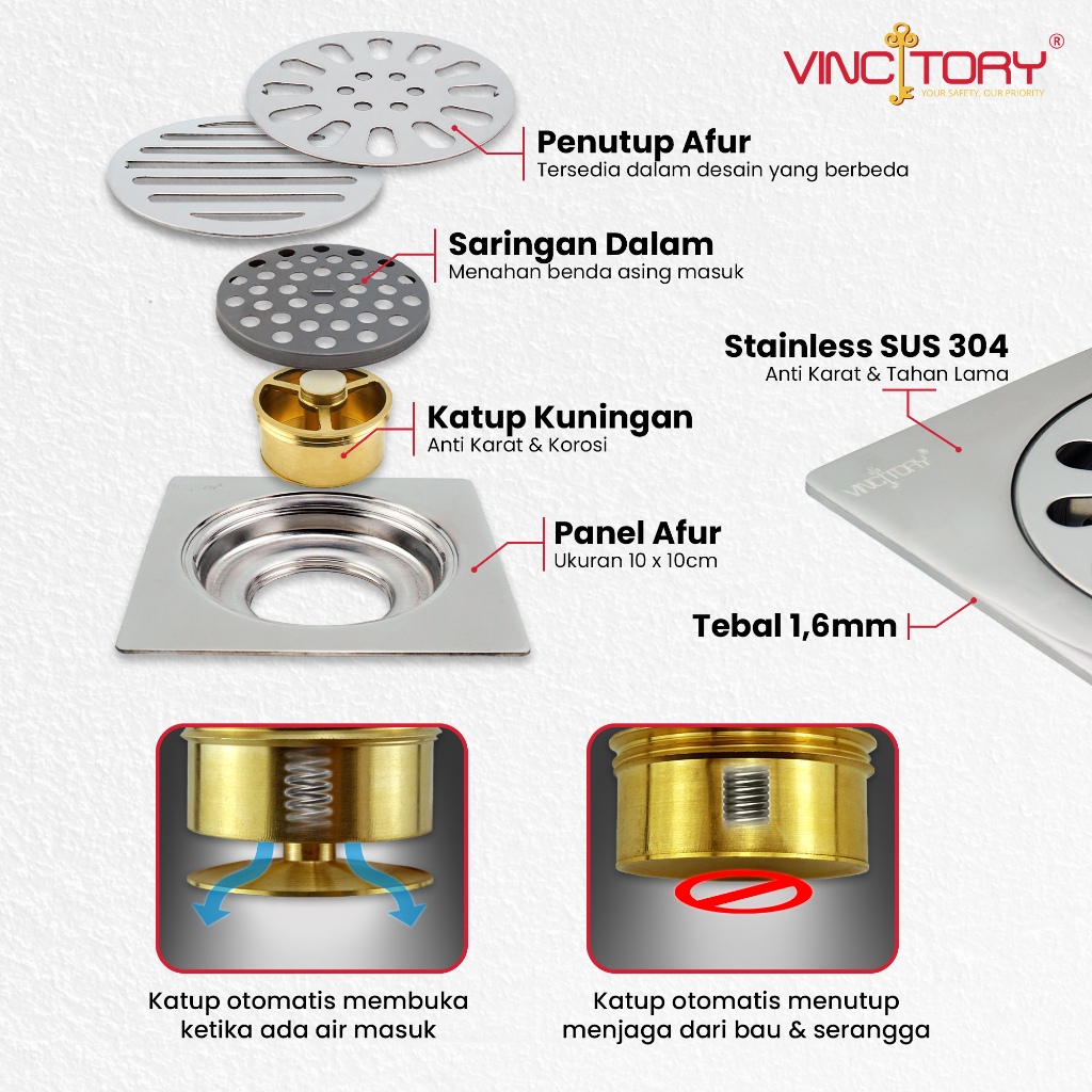 Floor Drain Stainless VINCITORY Anti Serangga & Bau | Afur Lantai Saringan Katub Kuningan Otomatis | 2203