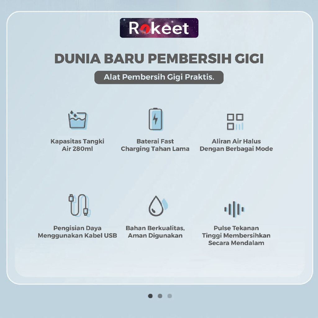 Rokeet Pembersih Karang Gigi Water Floss Electric Oral 280Ml Pembersih Gigi Penyesuaian Mode Pembilasan Tiga Kecepatan
