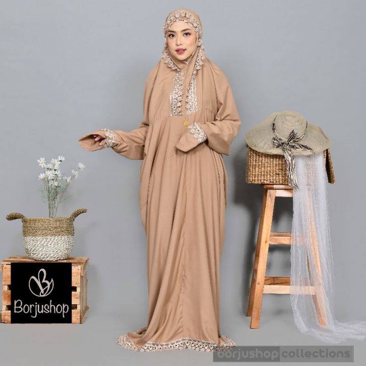 TERLARIS BORJUSHOP - Mukena Terusan Dewasa Katun Polos Renda Bintang Krisdayanti Mukenah Terusan