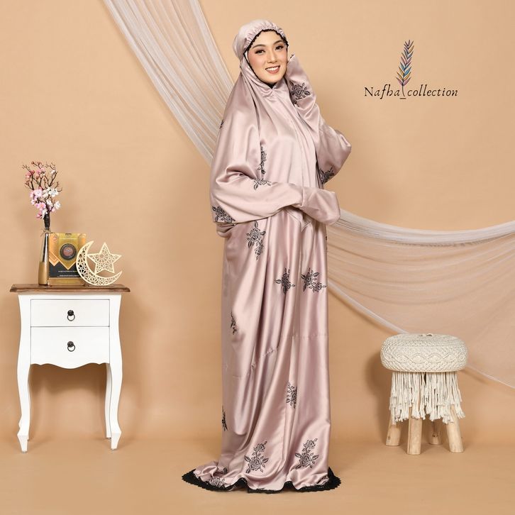 TERLARIS NAFHA - Mukena Terusan Dewasa Sutra Bunga Mawar Streamin NEW