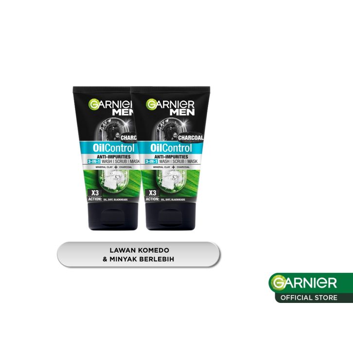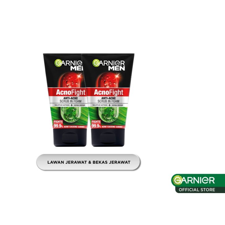 GARNIER Men Facial Wash Acno Fight Turbo Bright Wasabi Charcoal Oil 100ML 2pcs dan 3pcs