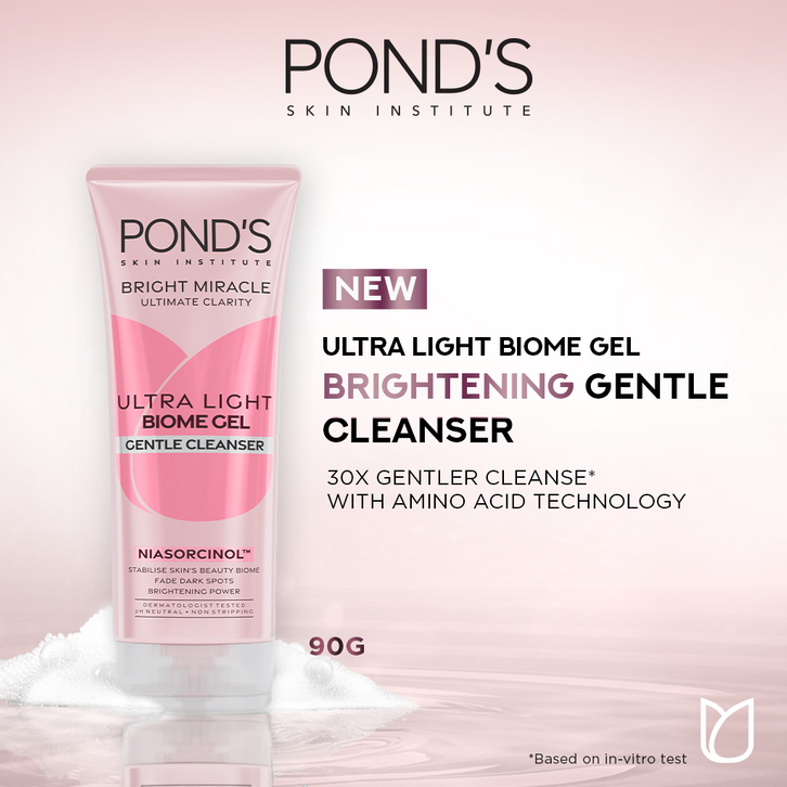 PONDS BRIGHT MIRACLE ULTRA LIGHT BIOME GEL GENTLE CLEANSER - BRIGHTENING FACIAL WASH 90GR