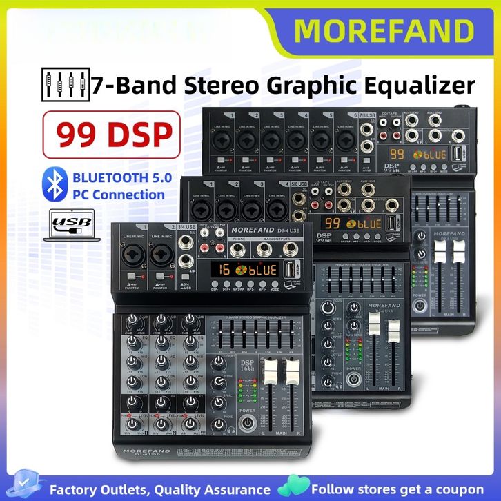 Mixer audio Equalizer Ashley Stereo Graphic Equalizer 99 DSP sinyal USB Bluetooth