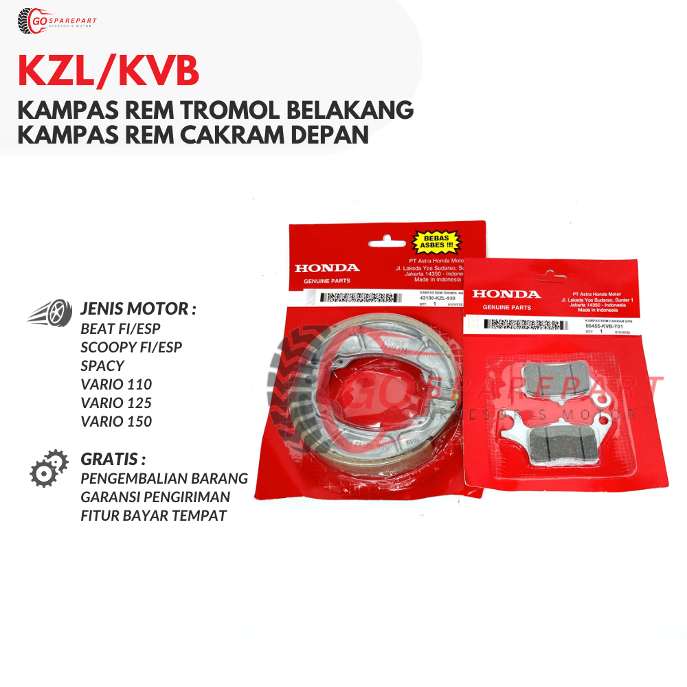 (HONDA) KZL/KVB PAKET KAMPAS REM BEAT FI DEPAN+BELAKANG / SCOOPY FI/ESP / SPACY / VARIO 110 / VARIO 125 / VARIO 150 / KA