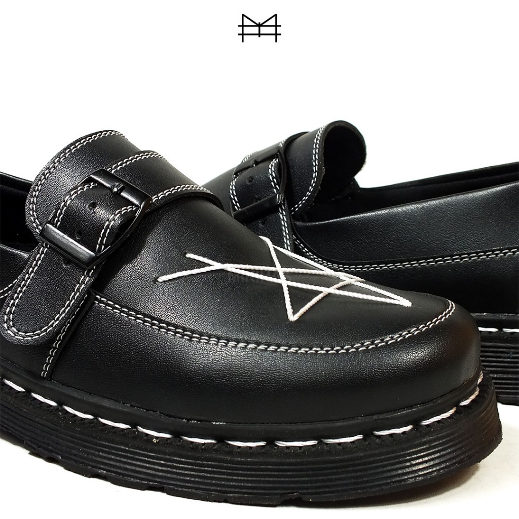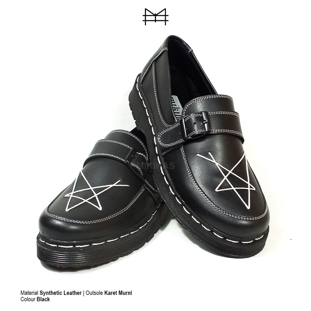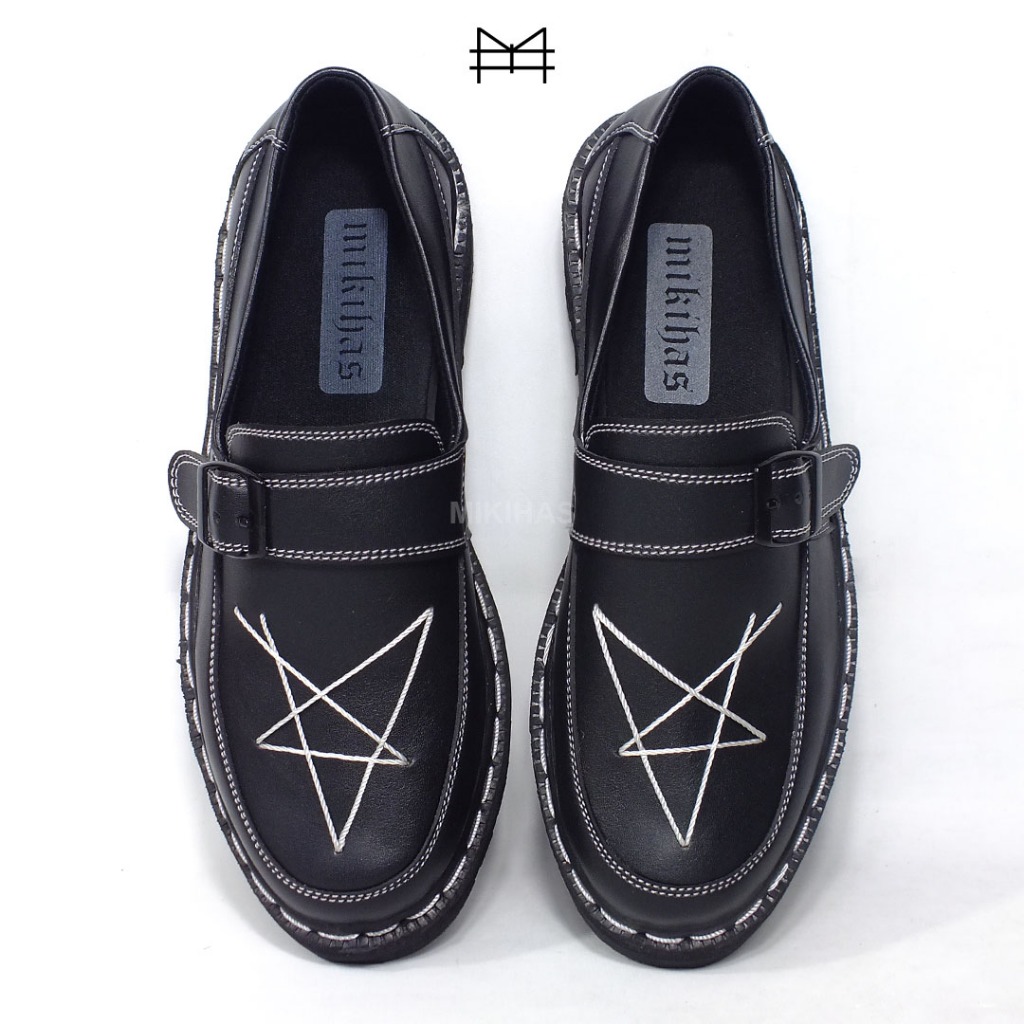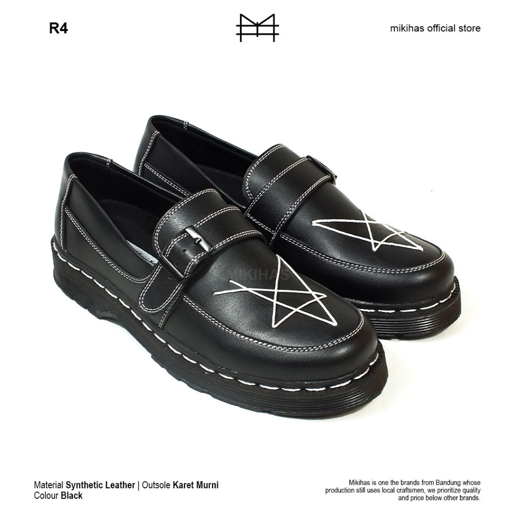 Mikihas - Sepatu Loafers Pria Kulit Hitam Slip-On Docmart Bintang - R4 Star