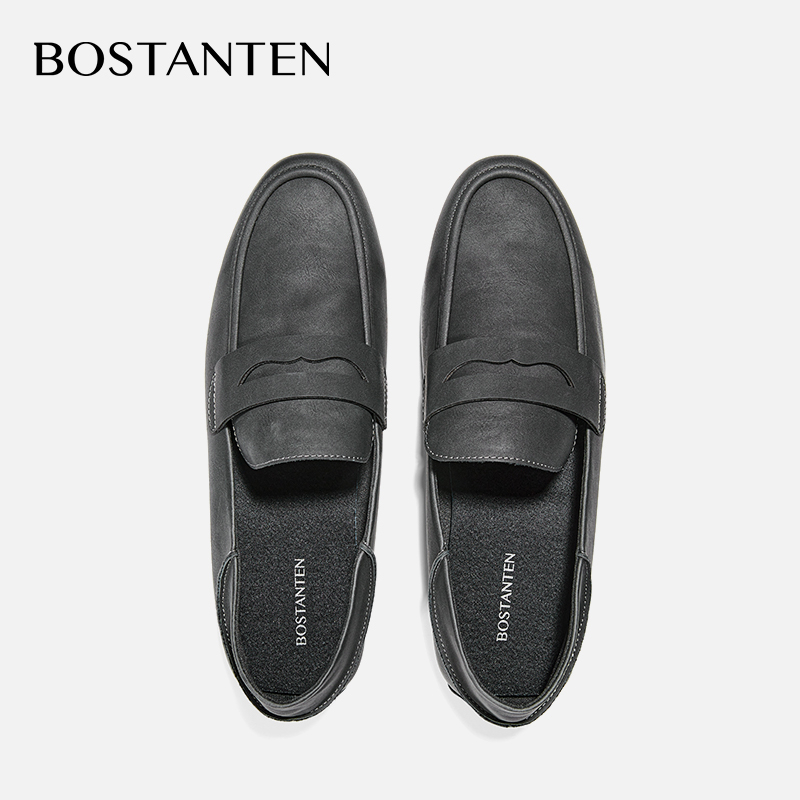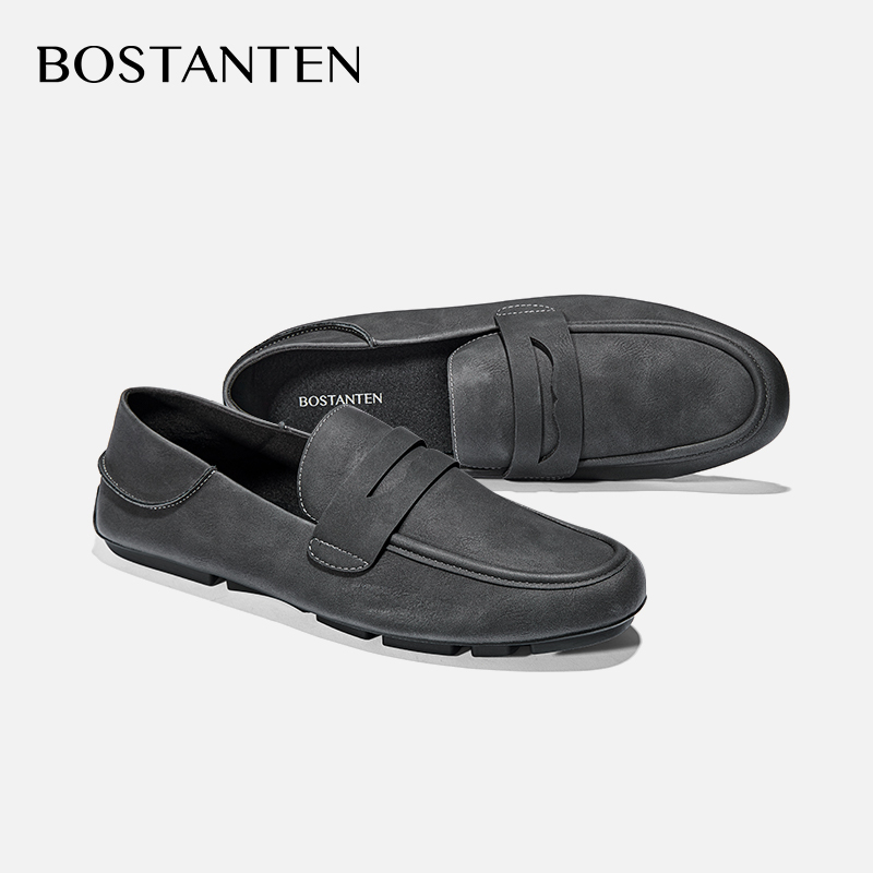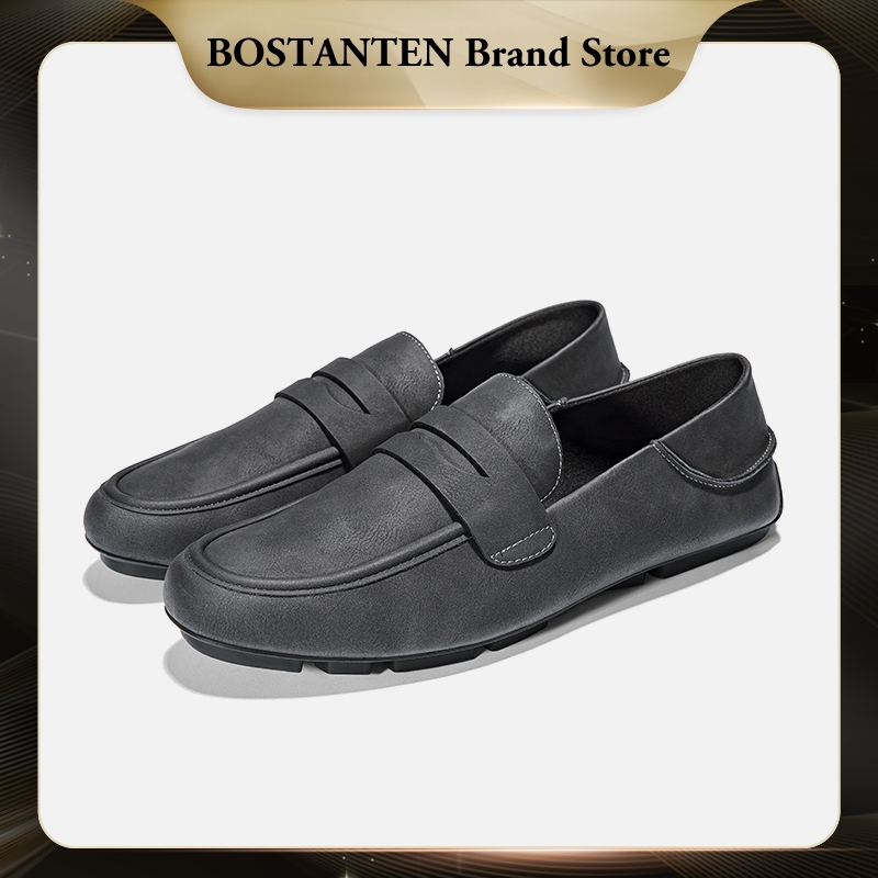 Bostanten Sepatu Pria Kasual Loafers Slip On Keren Sepatu Tanpa Tali Hitam/Abu-abu