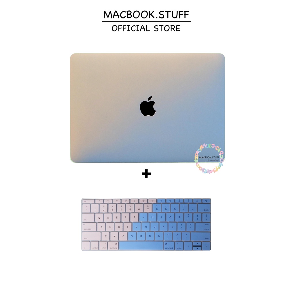 PAKET CASE & KEYBOARD MACBOOK GRADASI PASTEL BABYPINK-BLUE NEW AIR PRO RETINA 11 12 13 14 15 16 INCH NON / WITH CD ROOM