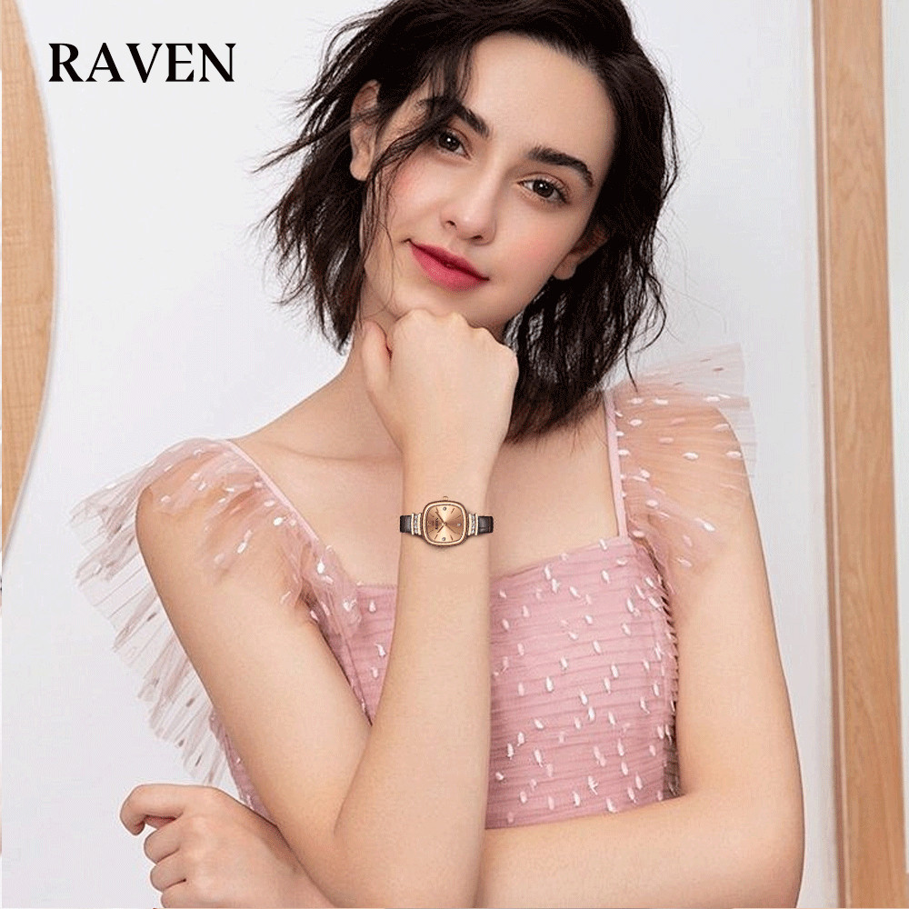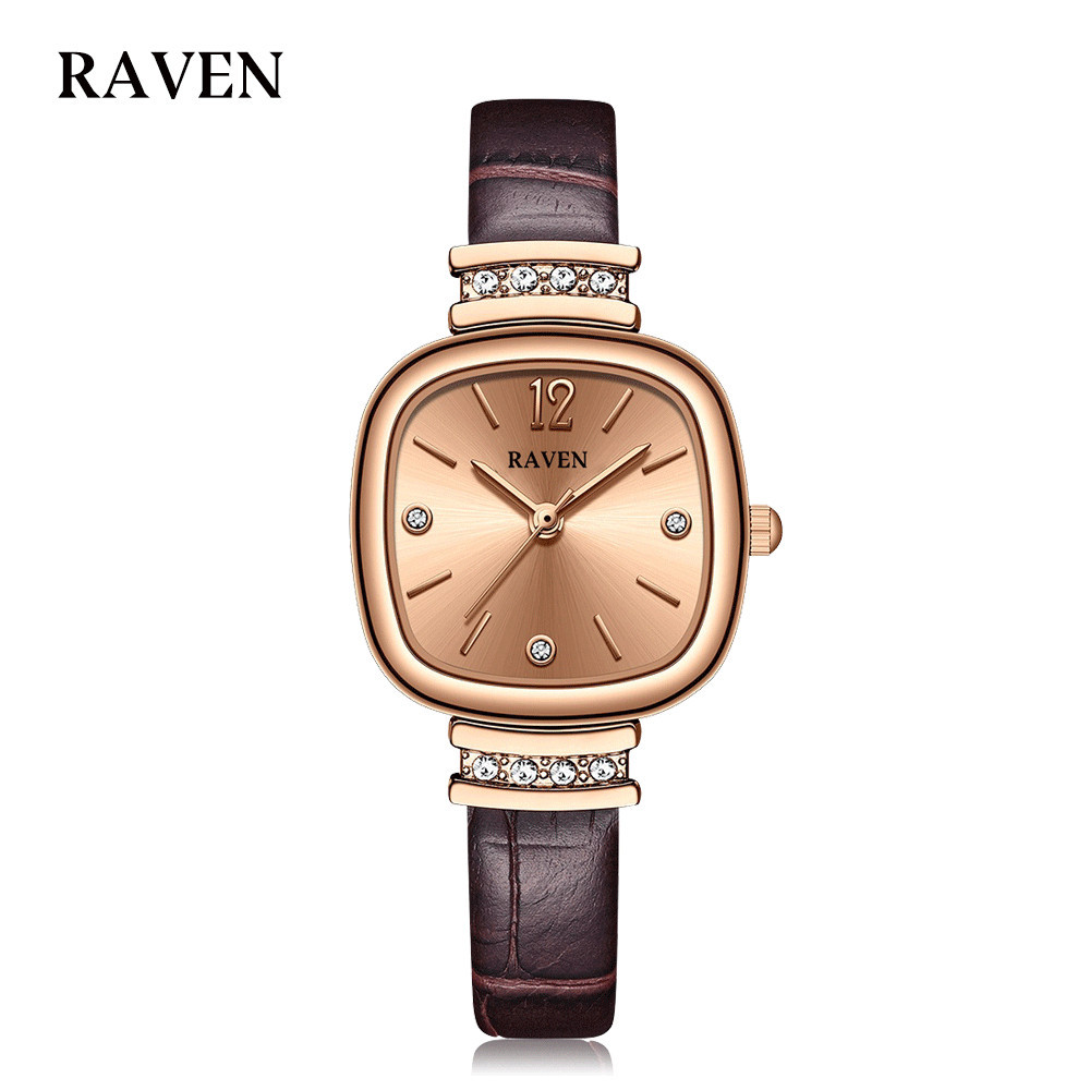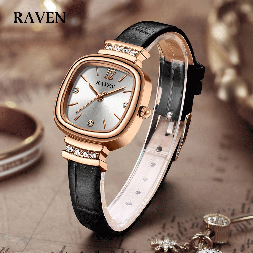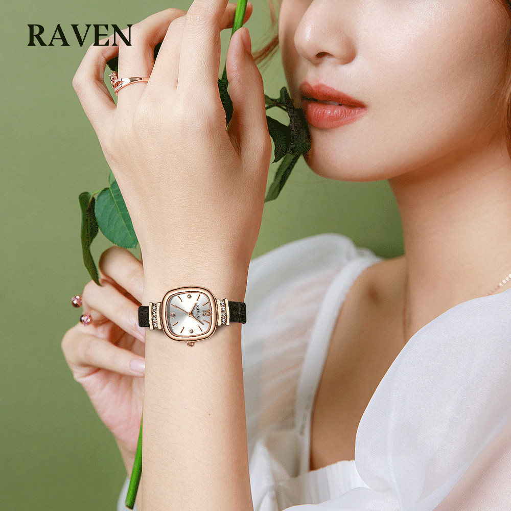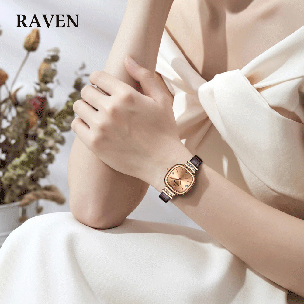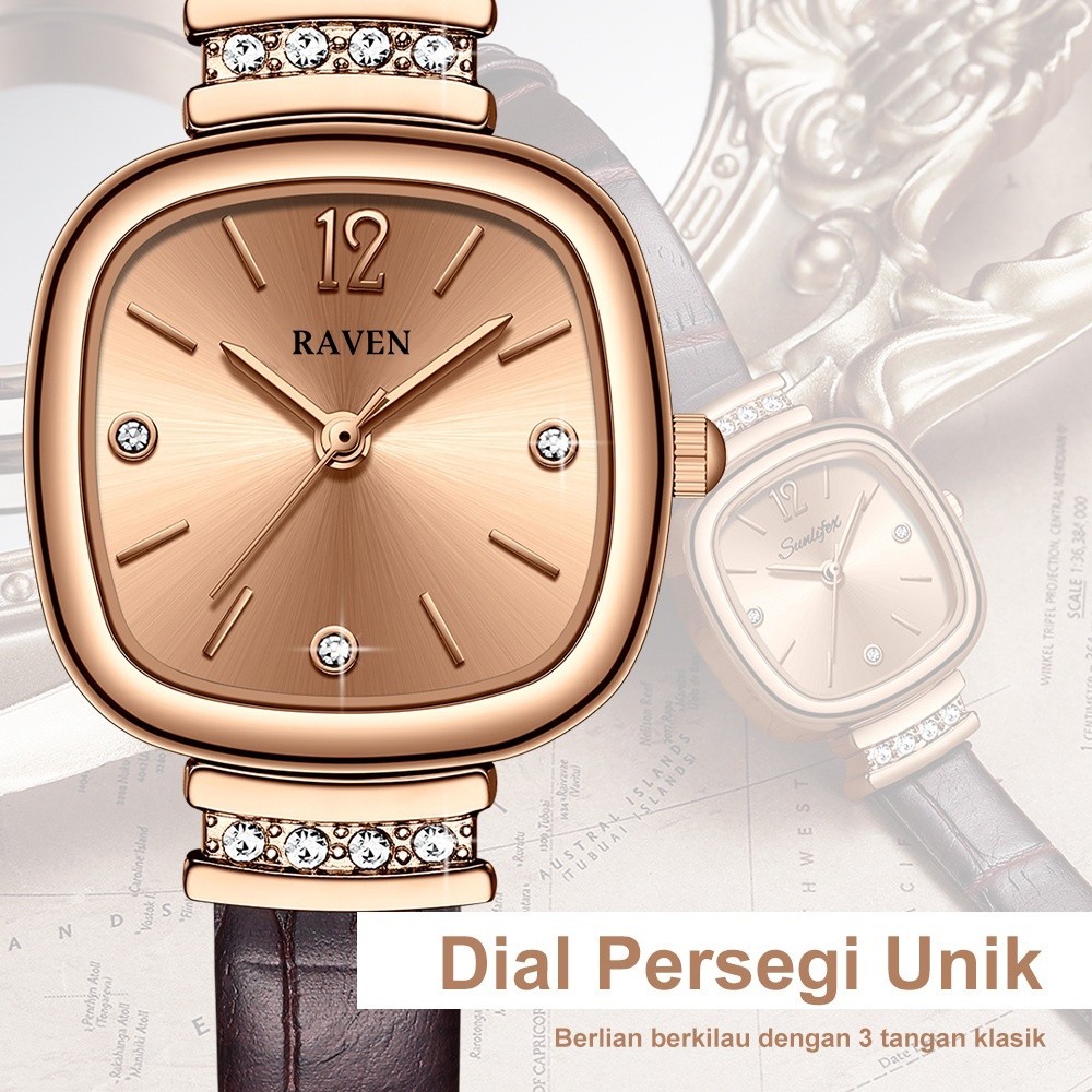 RAVEN Jam Tangan Wanita Original Berlian Gaya Antik Anggun Jam Kuarsa Tali Kulit Jam Tangan Cewek
