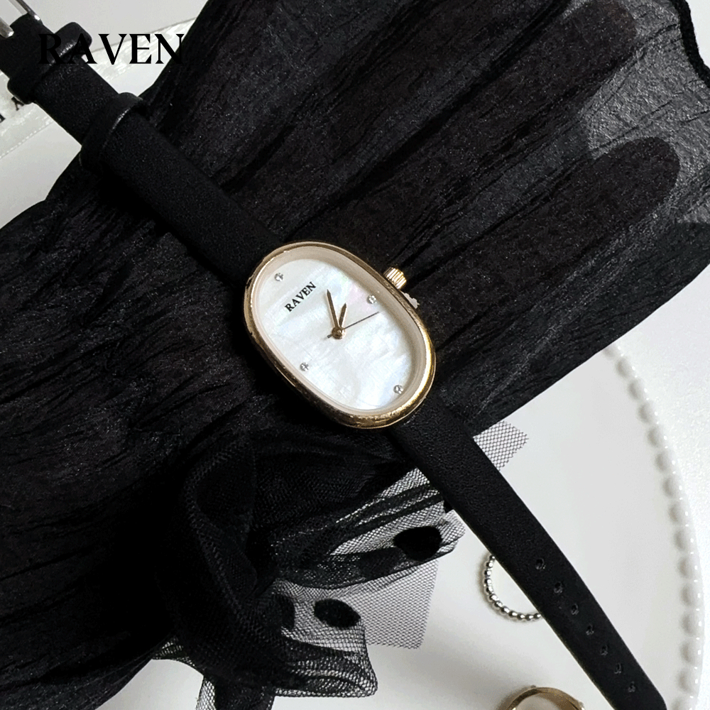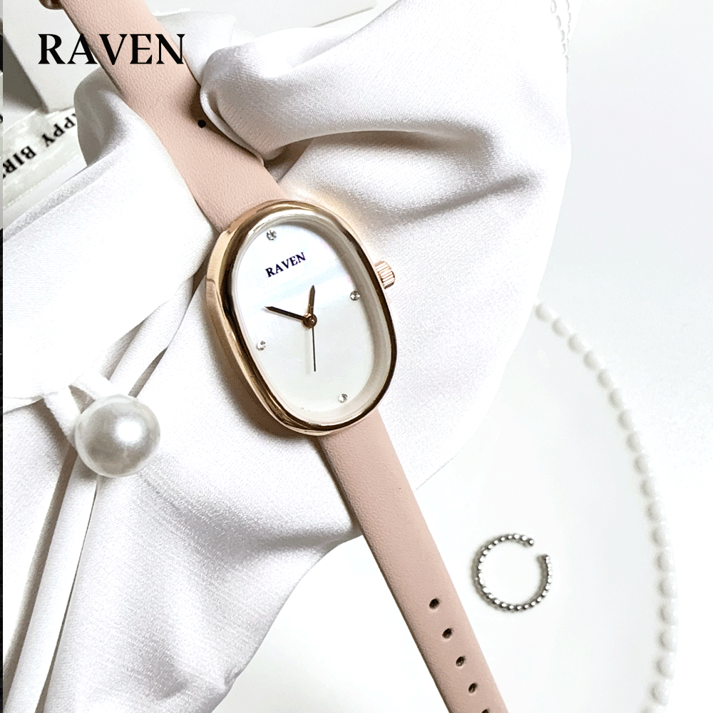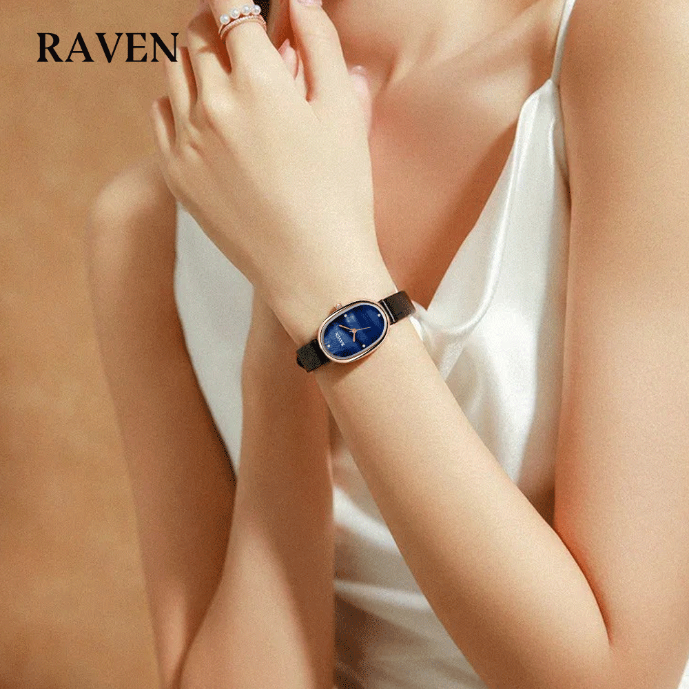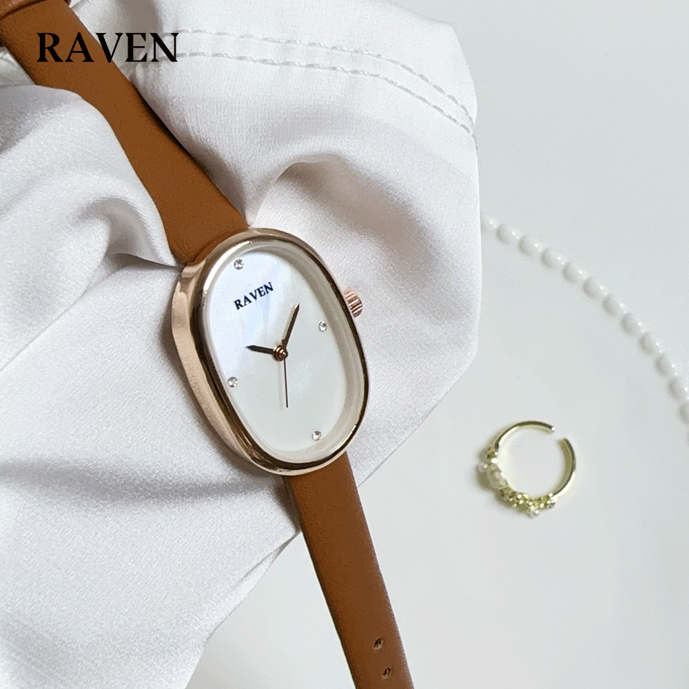 RAVEN Jam Tangan Wanita Oval Mode Korea Tekstur Khusus Panggilan Anti Air Tali Kulit Jam Tangan Cewek