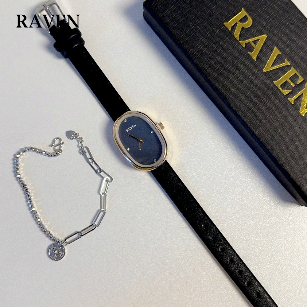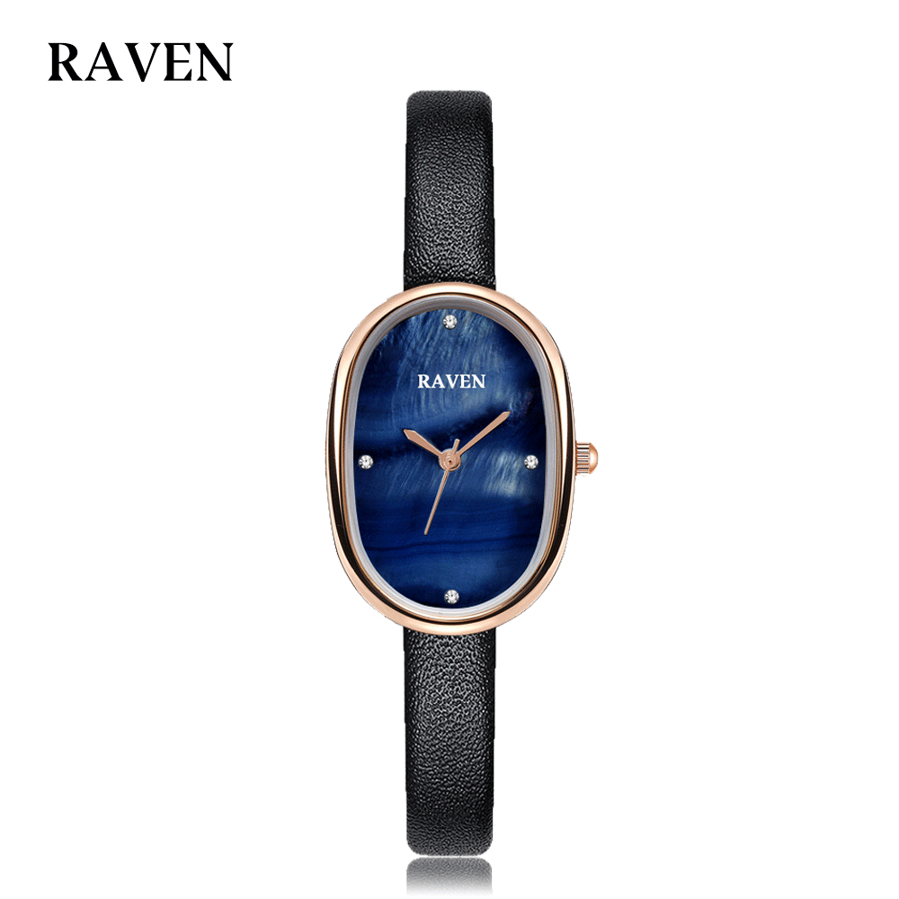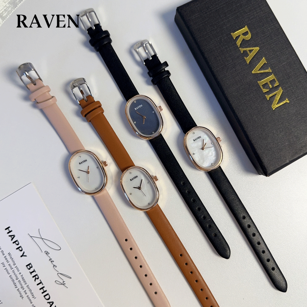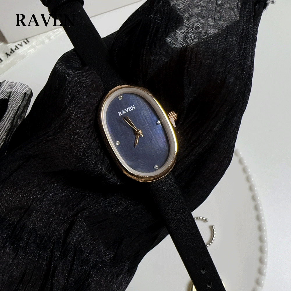 RAVEN Jam Tangan Wanita Oval Mode Korea Tekstur Khusus Panggilan Anti Air Tali Kulit Jam Tangan Cewek