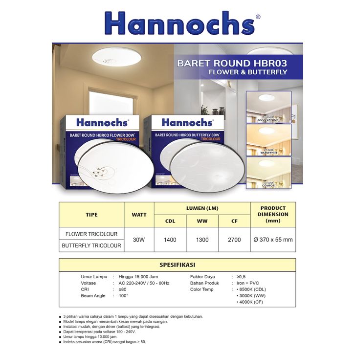 HANNOCHS LAMPU DOWNLIGHT LED OMBAK 50W TRICOLOUR LAMPU DOWNLIGHT HANNOCHS LED BARET ROUND HBR03 OMBAK