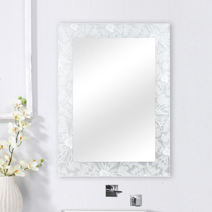 AZKO Fosa 70X50 cm Cermin Dinding Kamar Mandi Flower Printing - Silver Bathroom Wall Mirror Rak Cermin Tembok