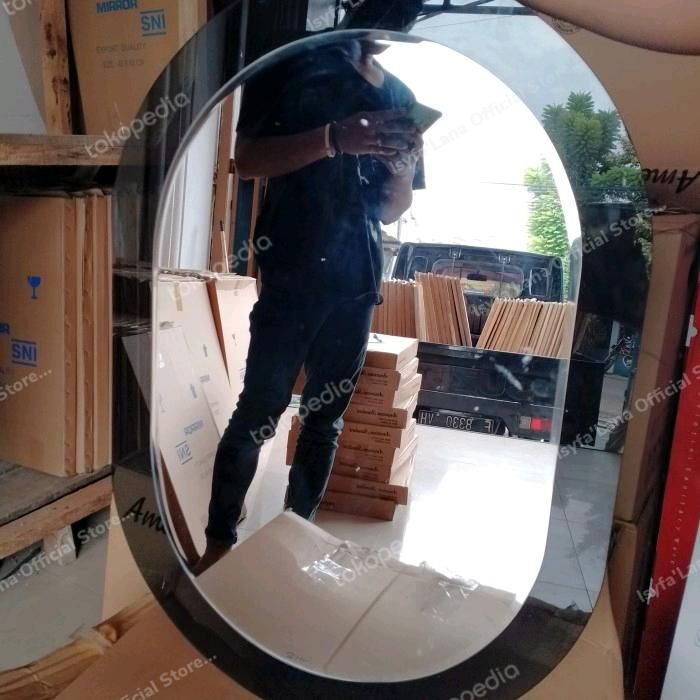 cermin kamar mandi dinding model Oval Kapsul Double Hitam