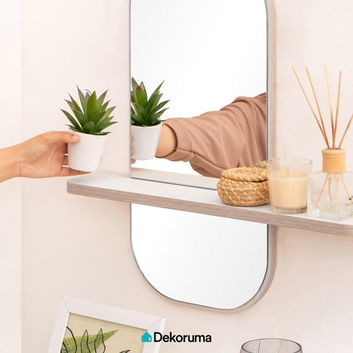 Dekoruma SUKU Cermin Dinding Kayu - L-Shaped Mirror with Shelf