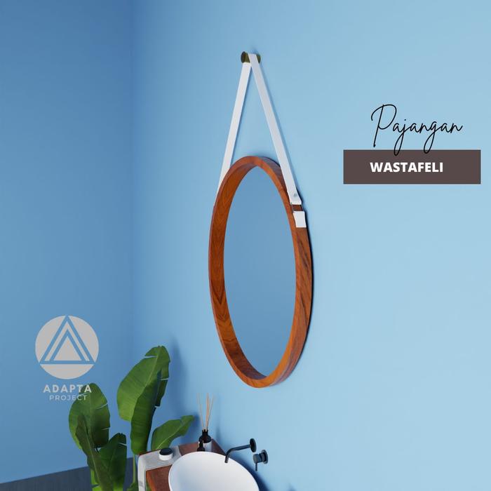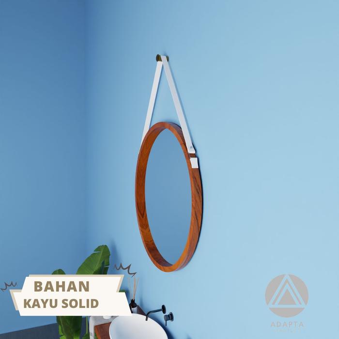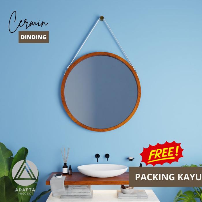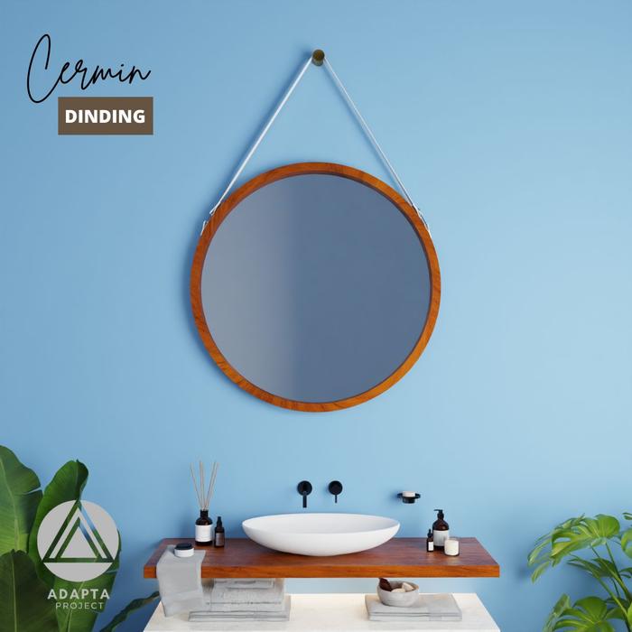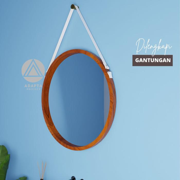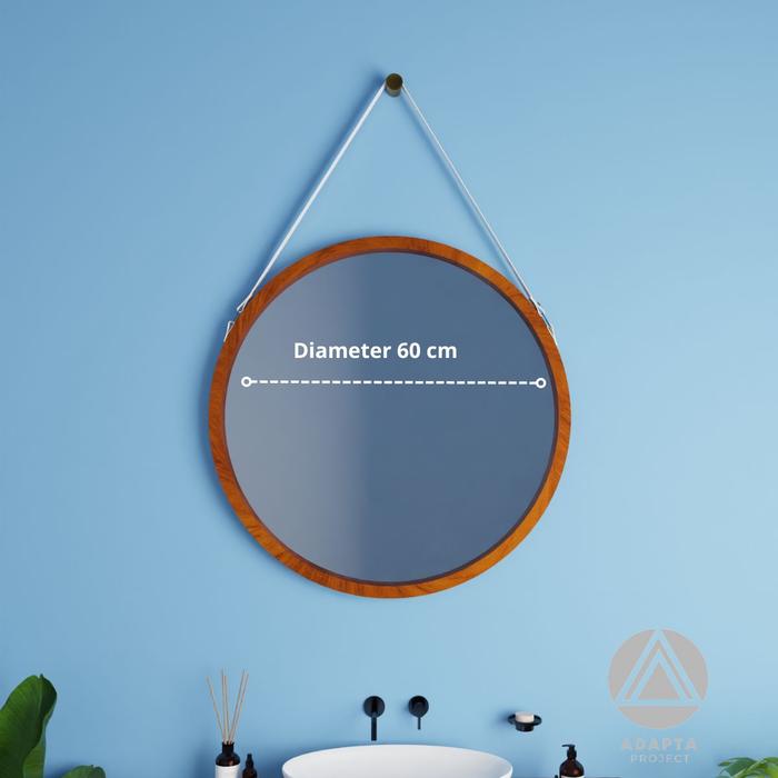 Adapta Cermin Dinding Kayu Bulat Aestetic Diameter 60 Cm – Cermin Dinding wastafel Minimalis Natural Brown