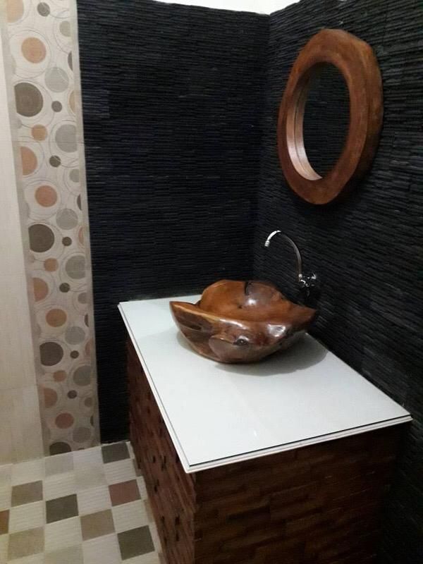 cermin wastafel toilet kamar mandi / dinding kayu trembesi