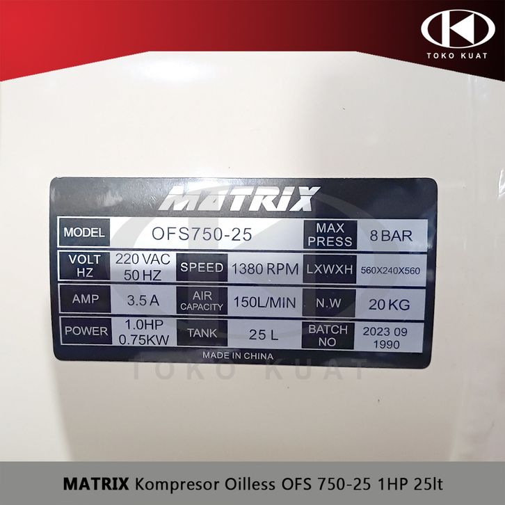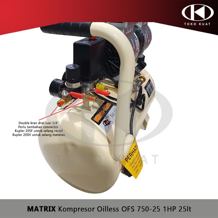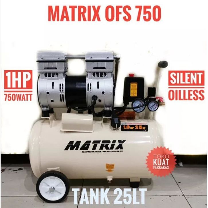 Kompresor 1HP 750Watt 25L Oil-less MATRIX Compressor Silent OFS 750-25