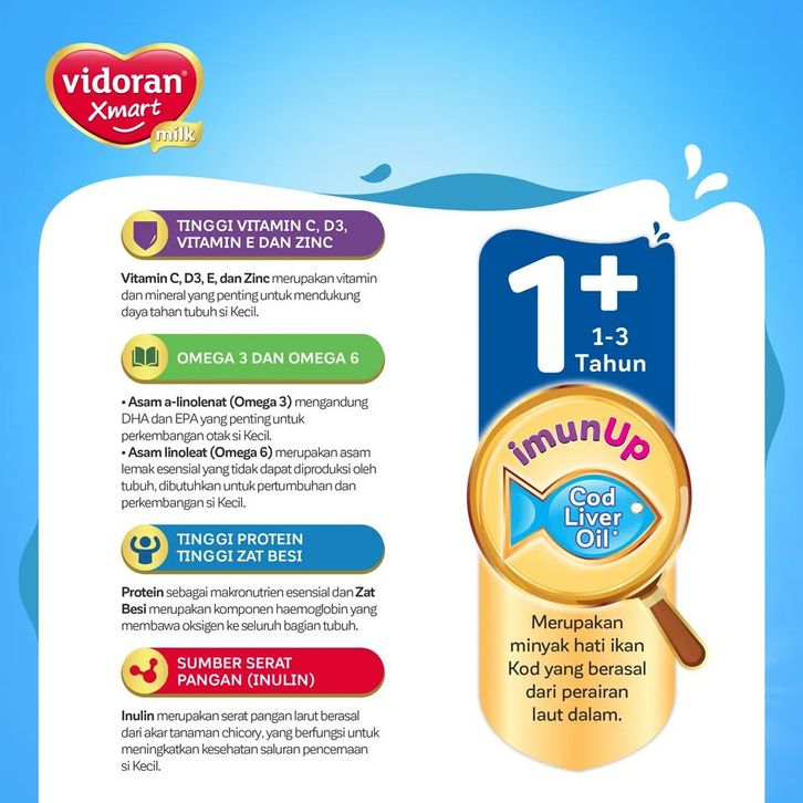 vidoran Xmart 1+ Susu Pertumbuhan Anak 1-3 Tahun Vanilla 700 g