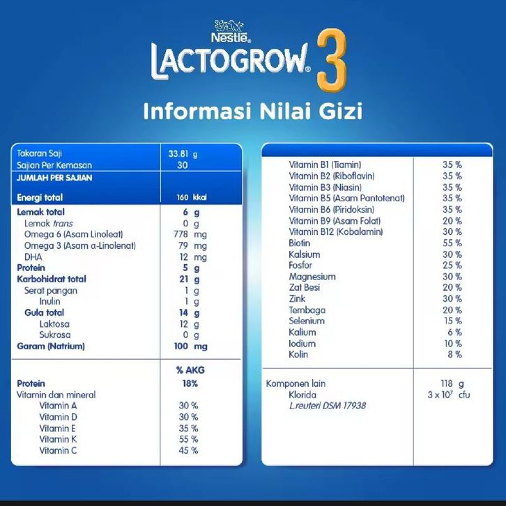 LACTOGROW 3 VANILA/MADU SUSU PERTUMBUHAN ANAK 1-3 TAHUN BOX 1KG