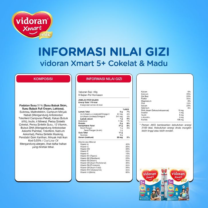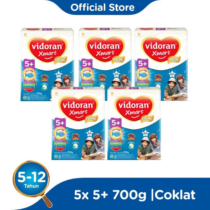 vidoran Xmart 5+ Coklat 700gr Susu Formula Pertumbuhan Anak 5 - 12 Tahun - 5 box - Exp : 03.2026