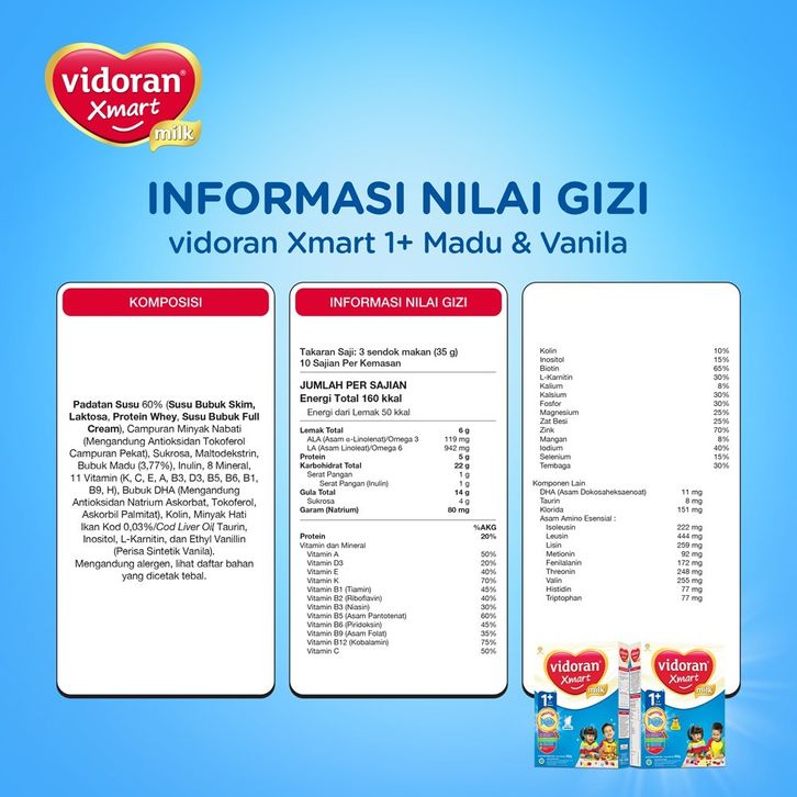 VIDORAN XMART 1+ Plus Susu Pertumbuhan Anak Rasa Vanilla & Madu 700 gr