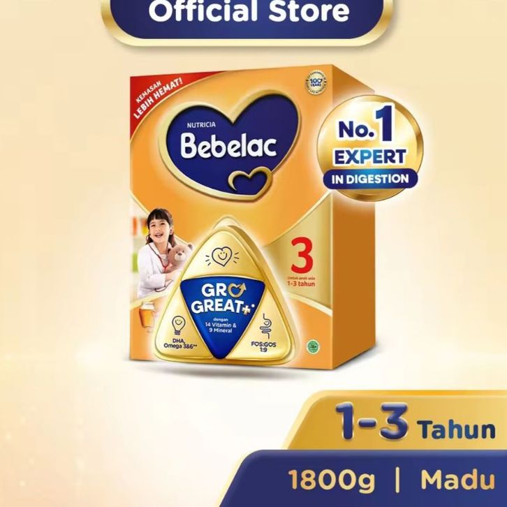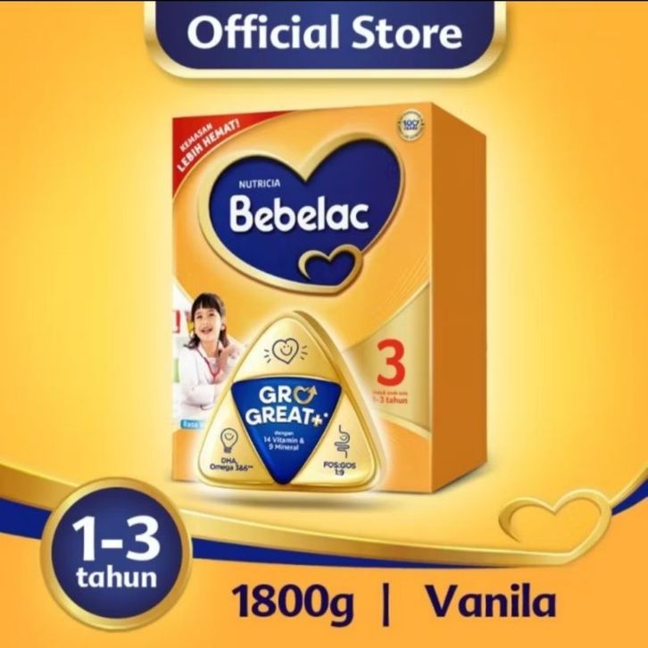 BEBELAC 3 VANILA/MADU GROGREAT+ 1800g SUSU PERTUMBUHAN ANAK USIA 1-3 THN