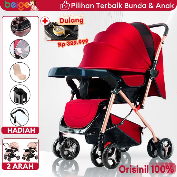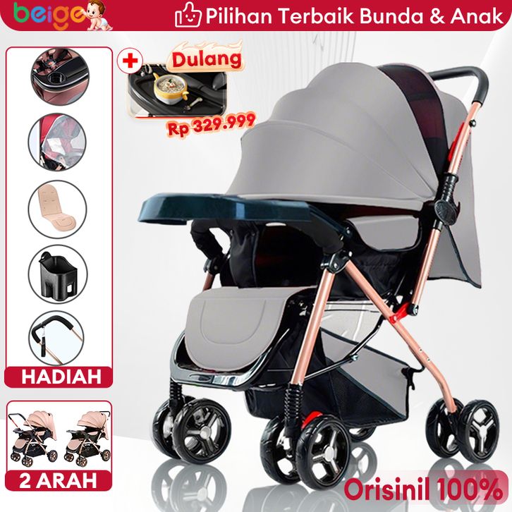 BEIGE Stroller Kereta Dorong Bayi Lipat traveling two way newborn portable mudah dibawa