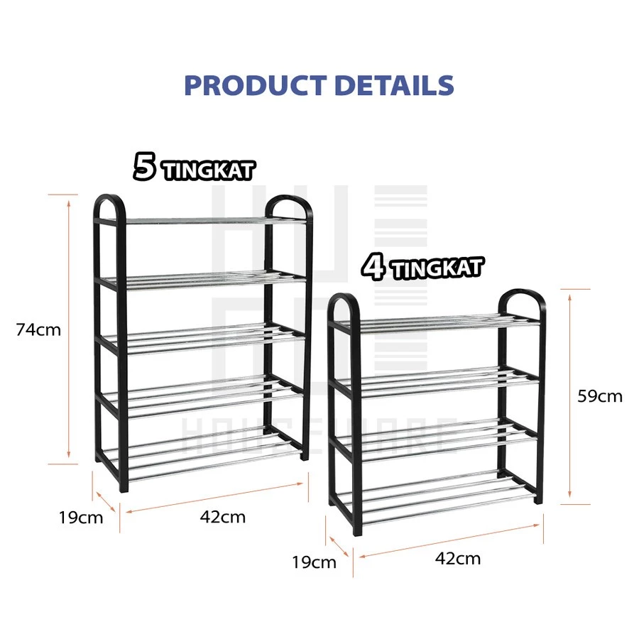 FREE ONGKIR Rak Sepatu Sandal 5 Dan 4 Susun Tempat Sepatu Portable Serbaguna Stainless Steel