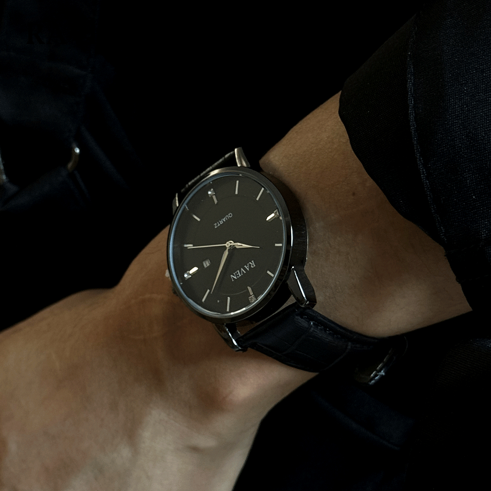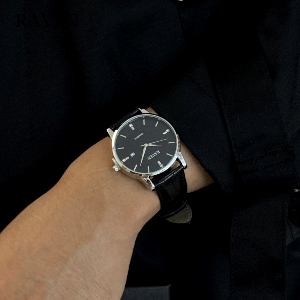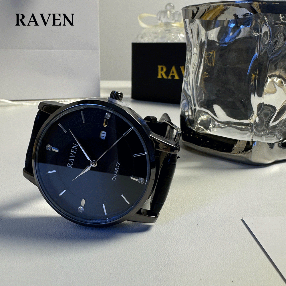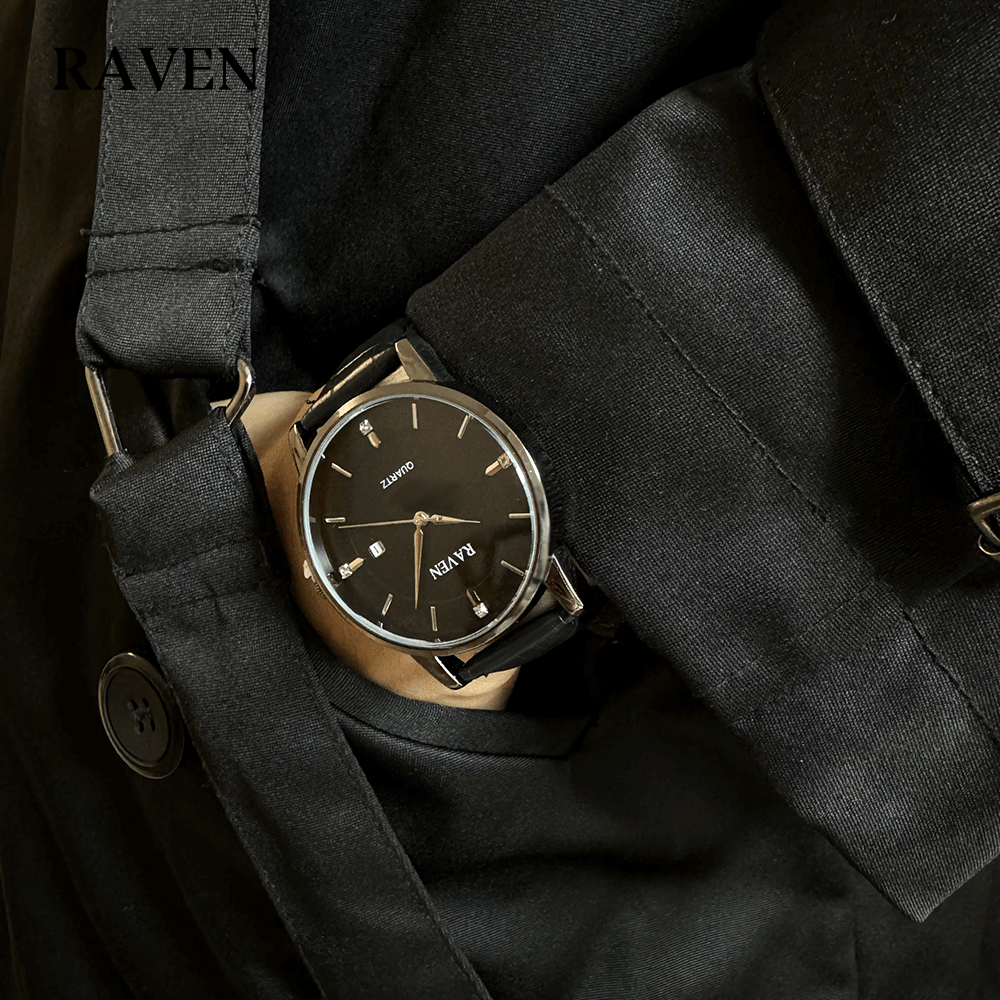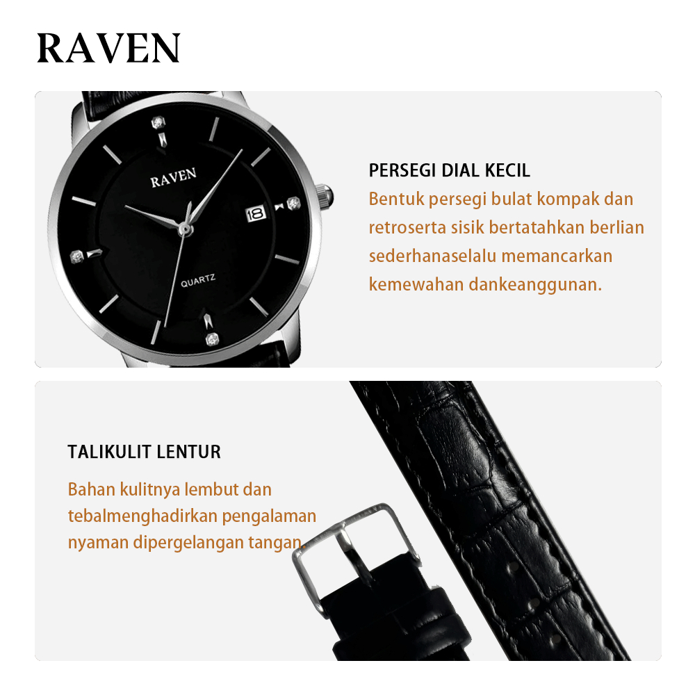 RAVEN Jam Tangan Pria Original Kuarsa Bisnis Mode Anti Air Tali Kulit Jam Tangan Cowok