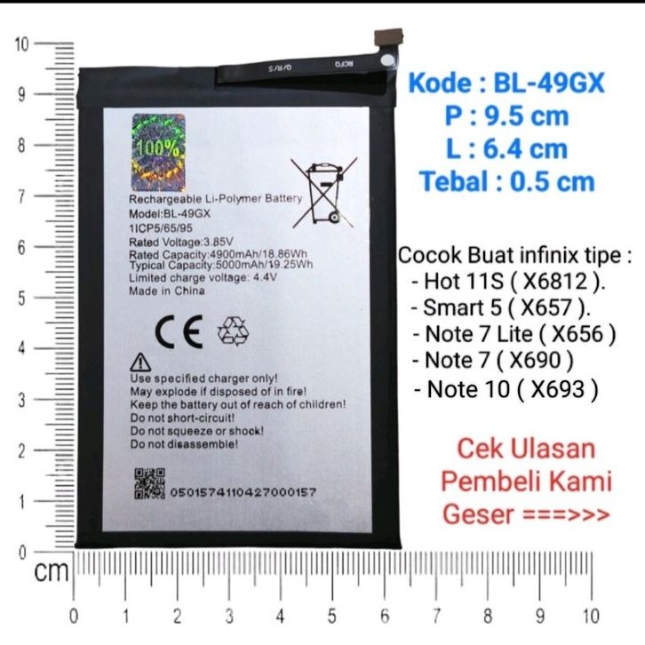 Baterai 100 new Infinix Hot 11S / X6812 / Hot 11S Nfc / SMART 5 / X657 / Smart 6 / X6511 / NOTE 7 LITE / X656 / Note 7