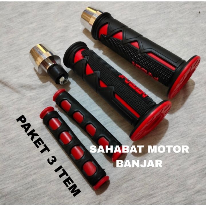 RK - PAKET 3IN1 HANDGRIP VARIASI M0DEEL Shark Fuzion Empuk + JALU STANG CHROME + KARET HANDLE REM BISA SEMUA MOTOR