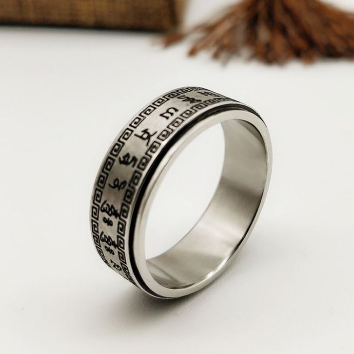 Cincin Mantra Shurangama Darani Titanium/Cincin Tulisan China gol Silver /Rings Men