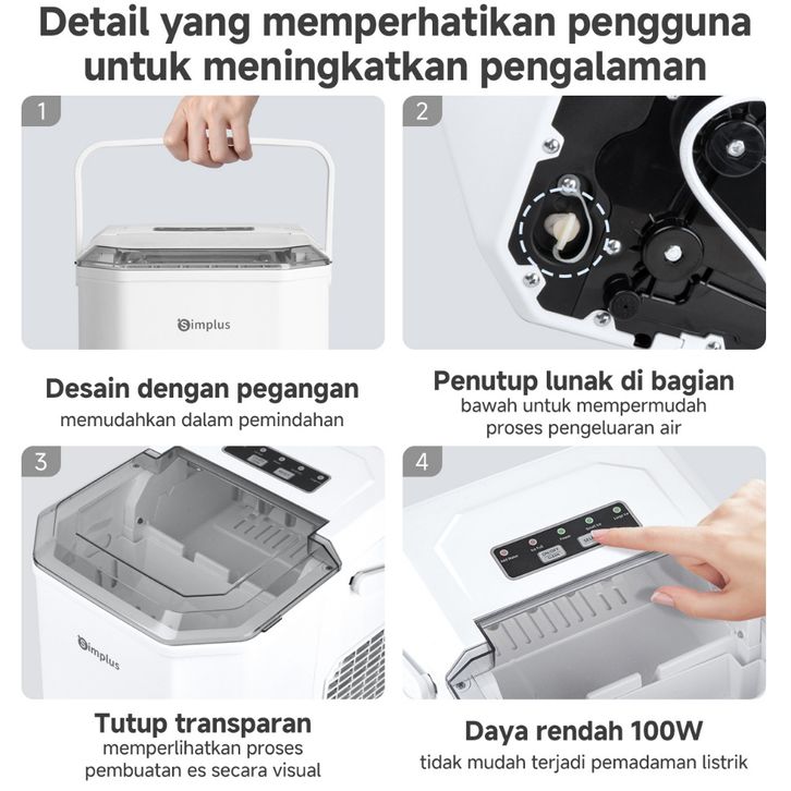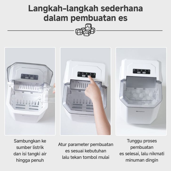 Mesin Es Batu Kristal Simplus Ice Maker Household 12Kg Water Tank Compact Design Low Power Automatic Ice Production