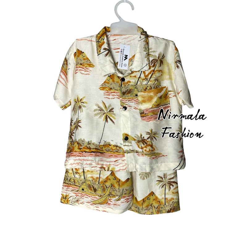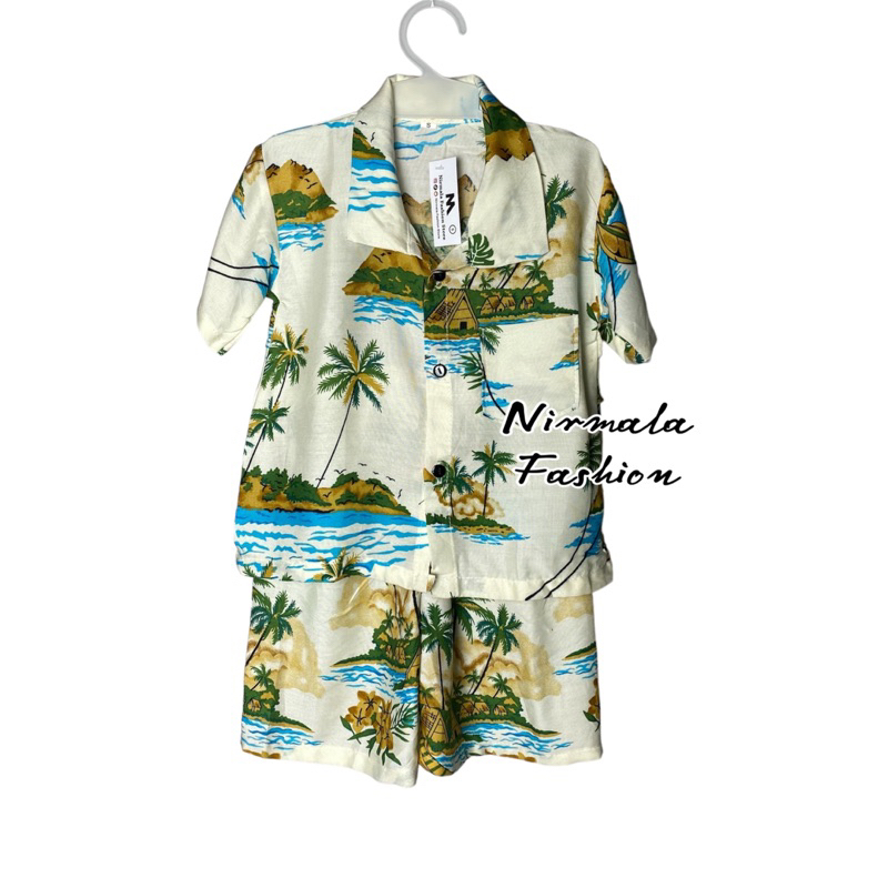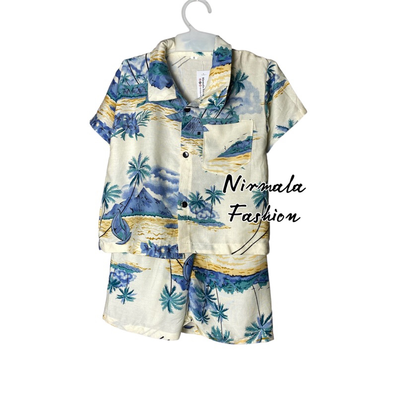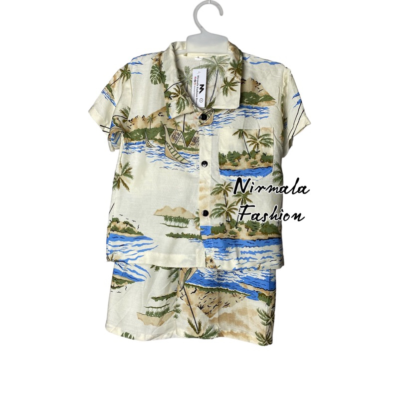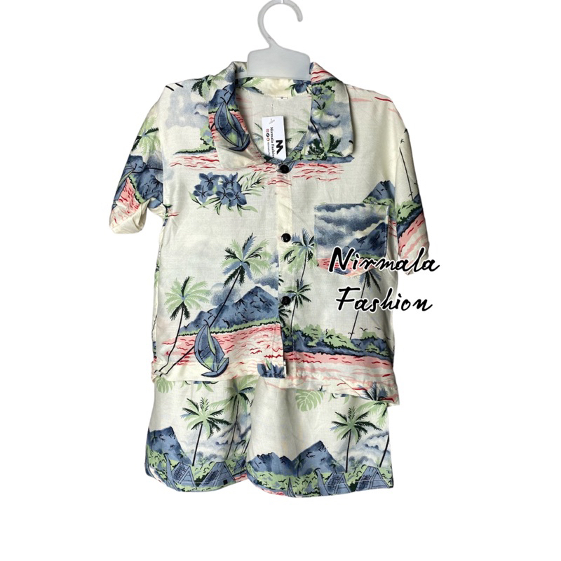 SETELAN KEMEJA ANAK MOTIF GUNUNG AGUNG | SETELAN HEM ANAK | HEM PANTAI ANAK