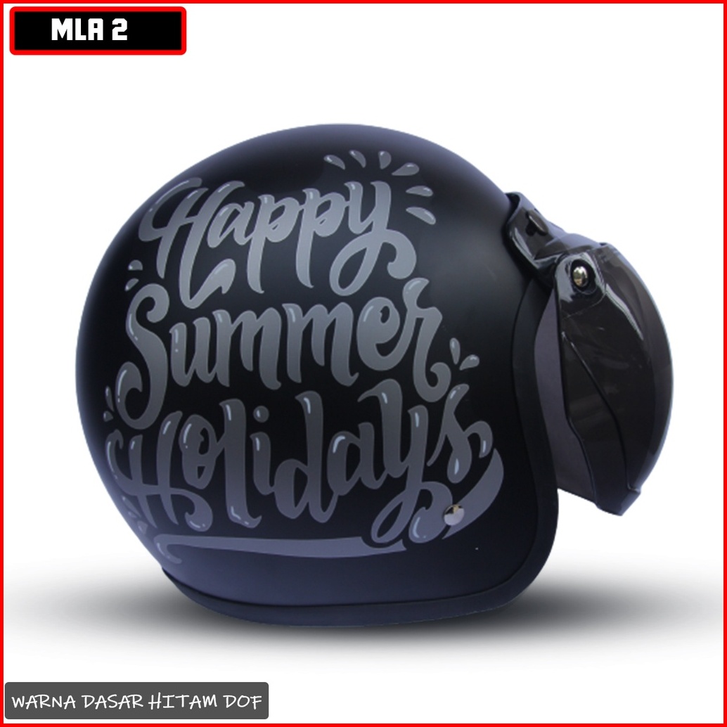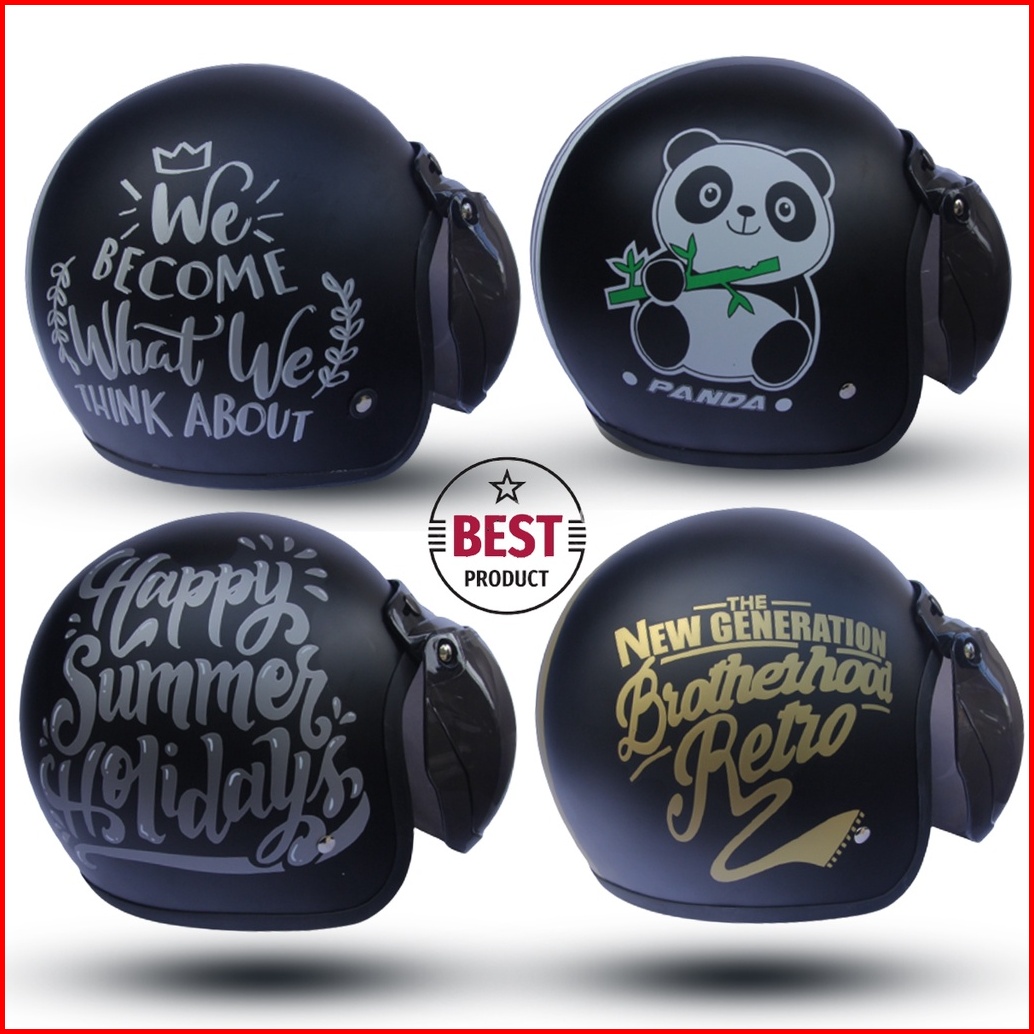 Helm Bogo Motif Dewasa Kaca Datar Hitam Untuk Pria Dan Wanita