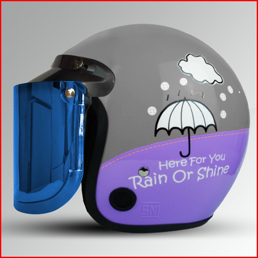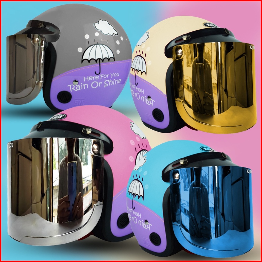 Helm Bogo Wanita Dewasa Retro Half Face Motif Pistota Rain Kaca Datar Injak Silver Premium -free Packing Dus