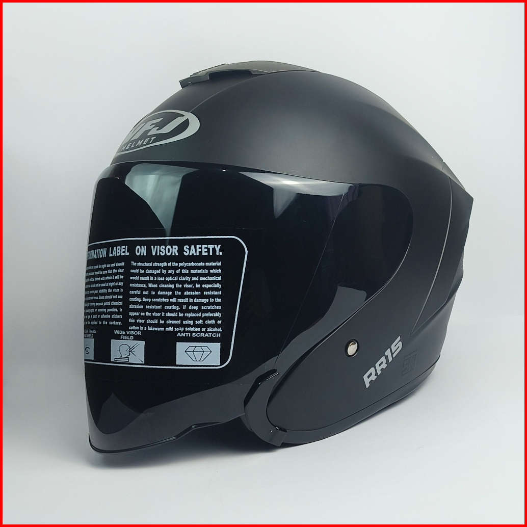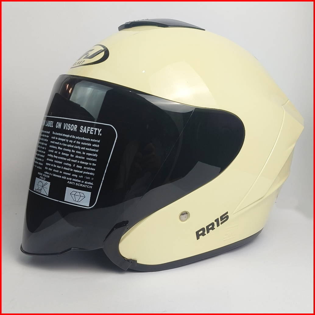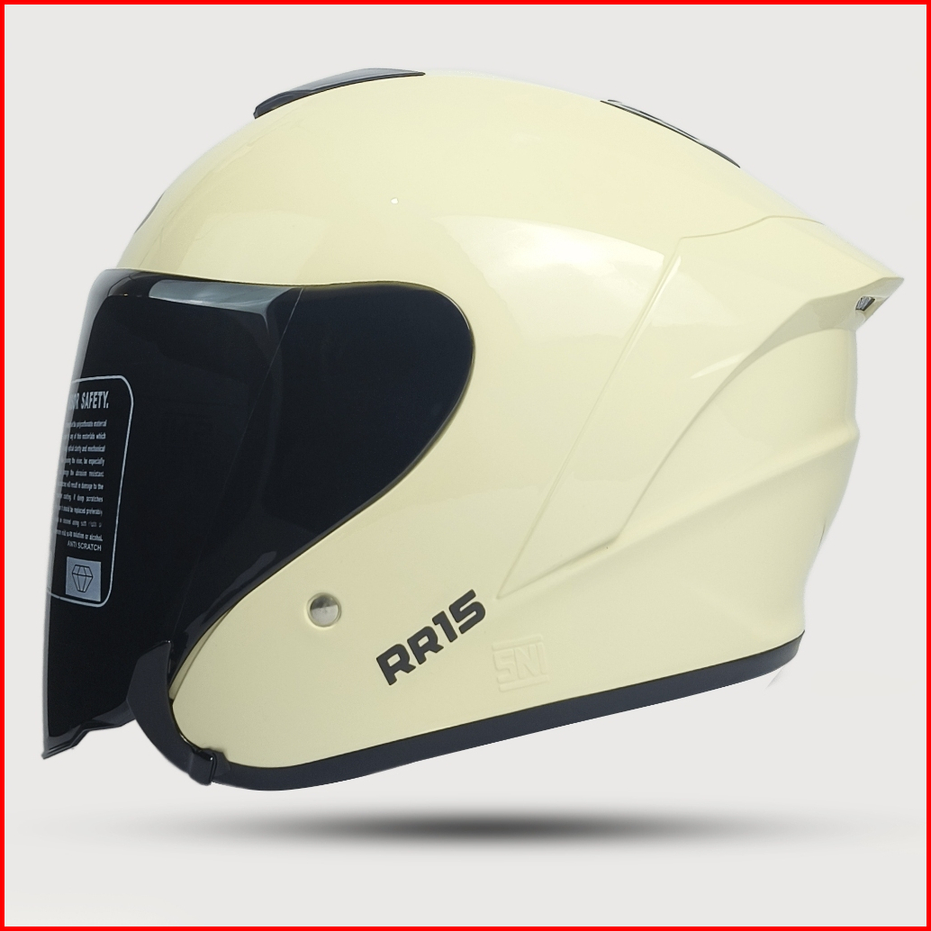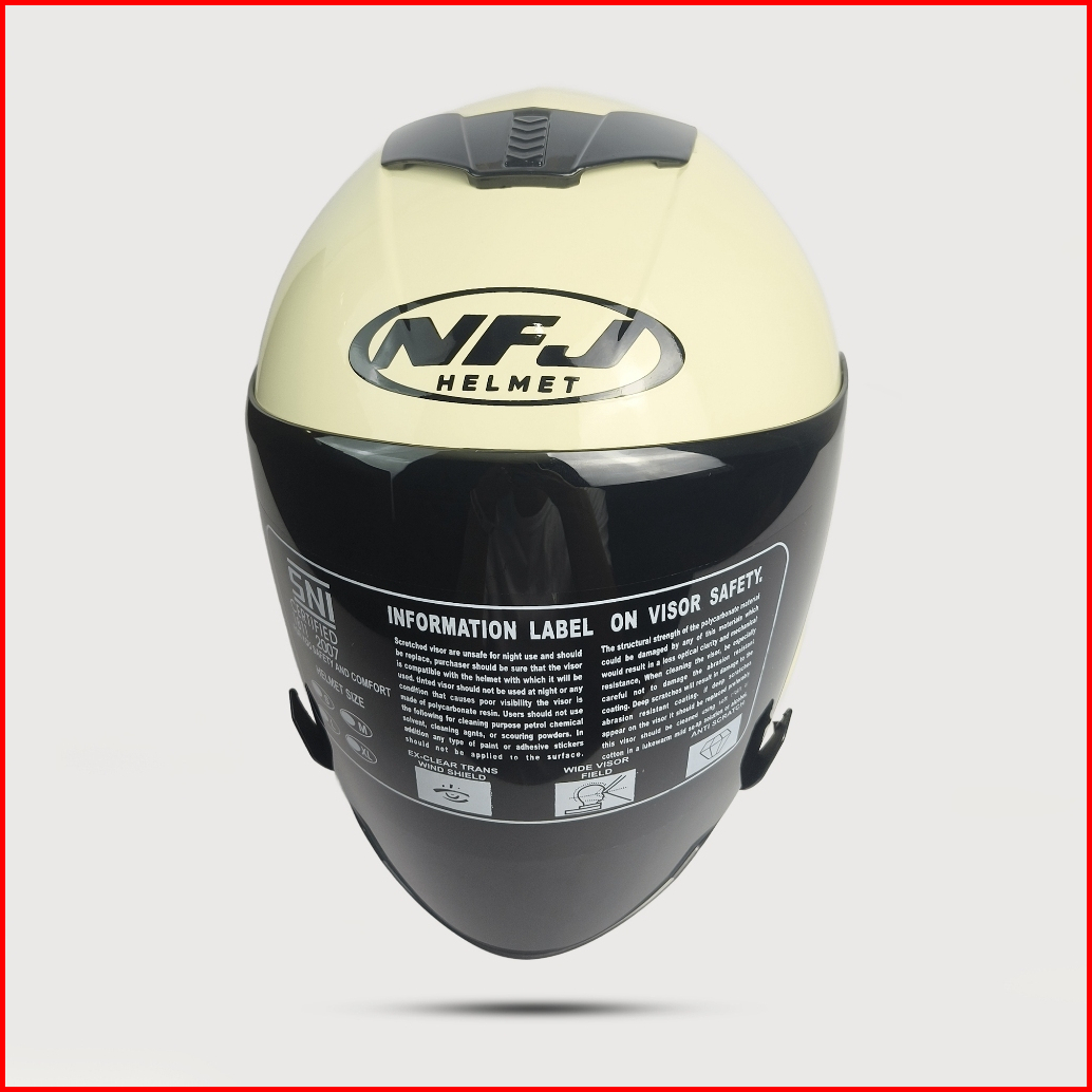 Helm Half Face Nfj Rr15 Cream Kaca Visor Hitam Smoke Helm Premium Untuk Pria Dan Wanita Dewasa Sni